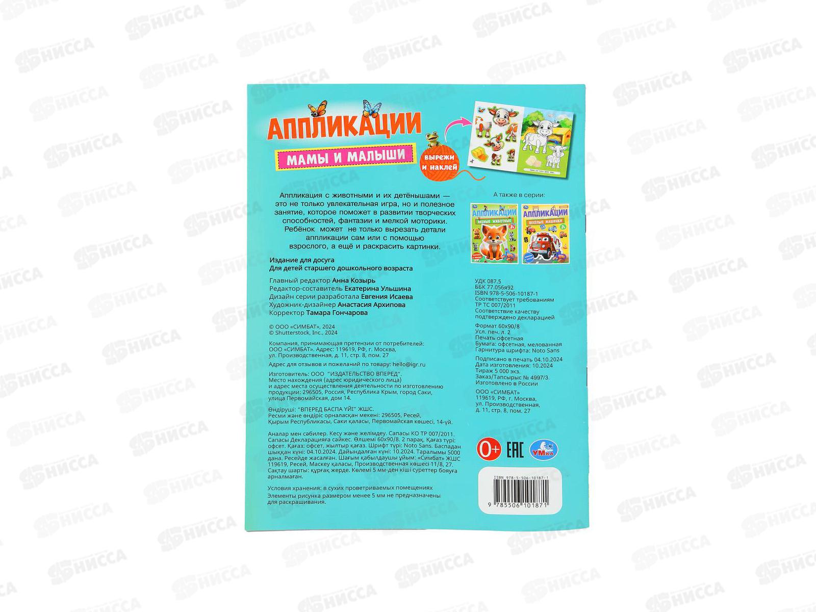 Аппликация "УМКА" 10187-1 Мамы и малыши. 210х290мм, 16стр. *50