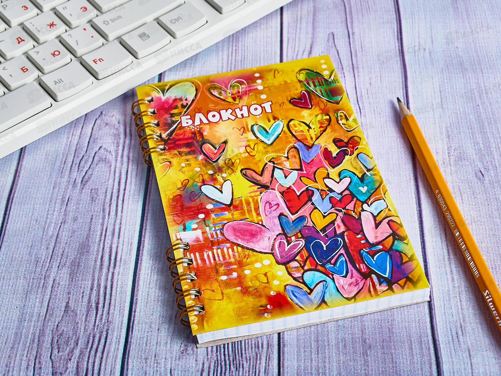 Блокнот 80листов ПГС Сердца, 100*150, глиттер, на гребне *12