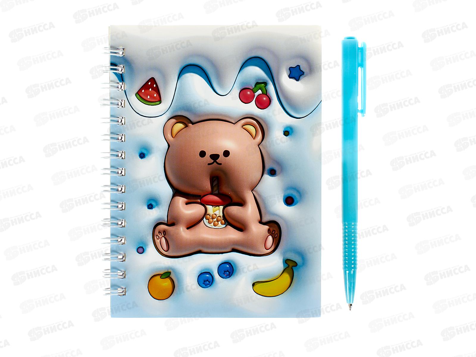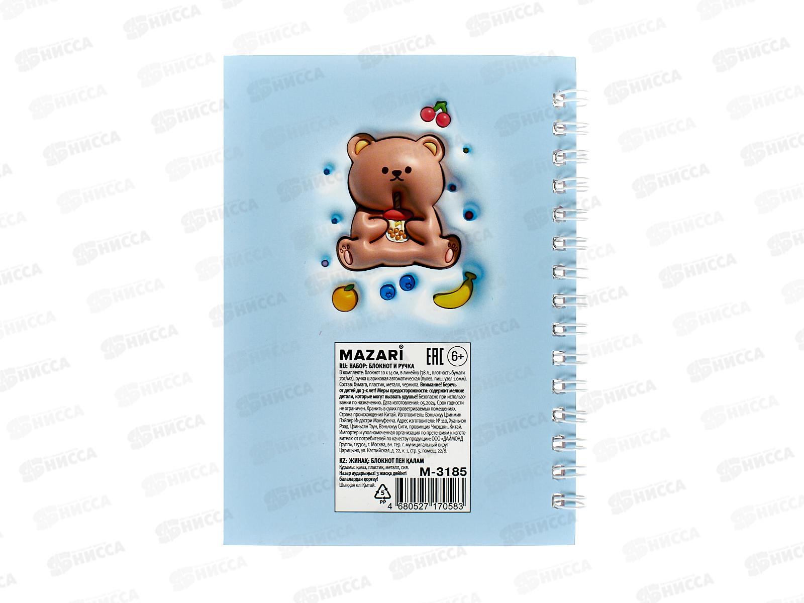 Блокнот с ручкой MAZARI Мишка 3D 10*14см 38л. лин., M-3185 *12