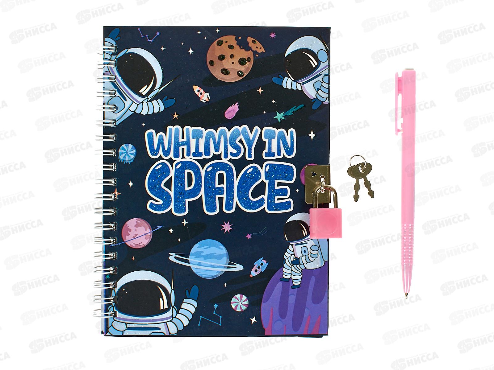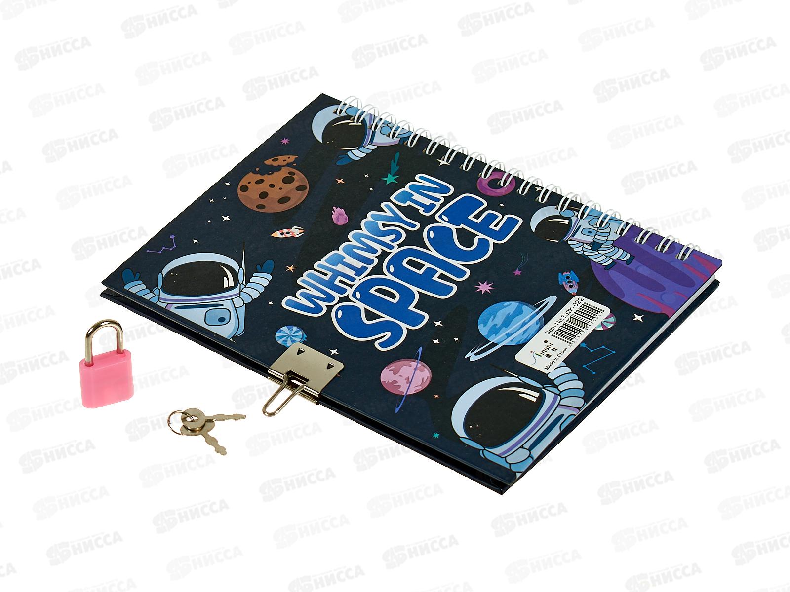 Блокнот подар. Alingar 45л лин "Космос, приключения"сиренев. AL10683/2