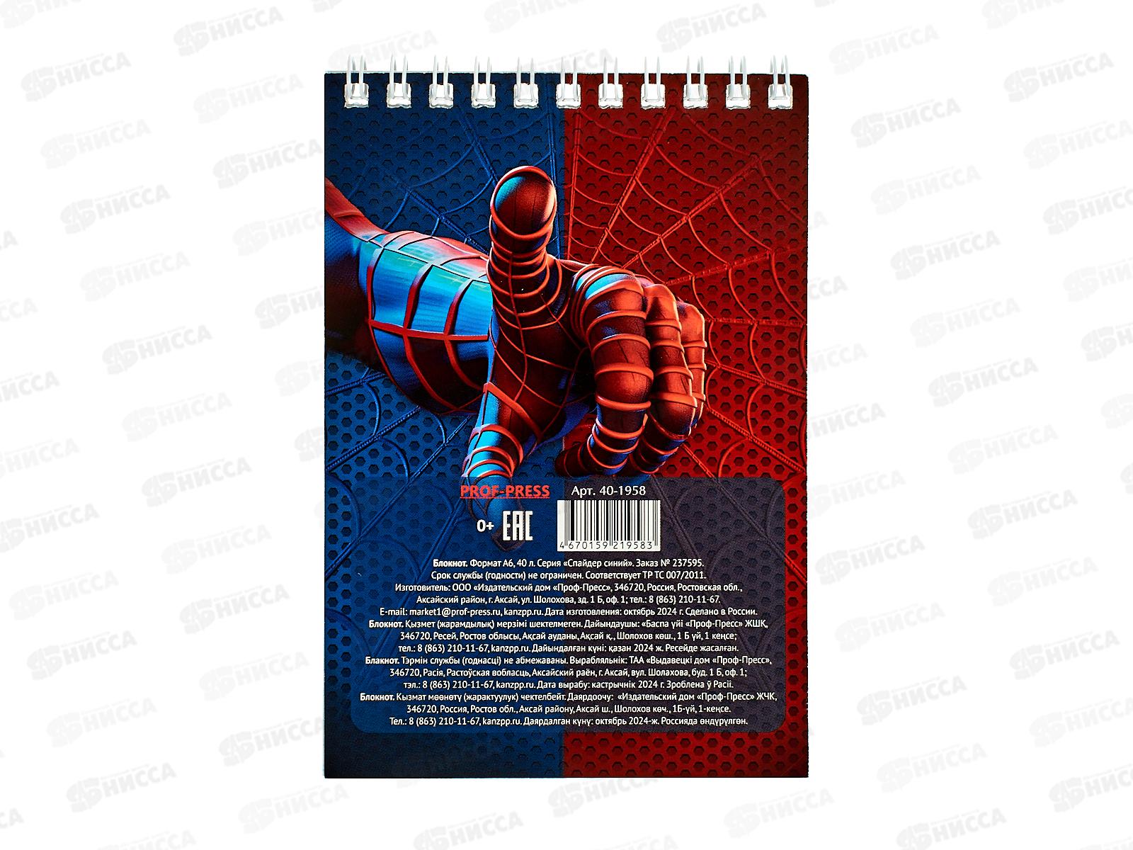 Блокнот ПП 40л А6 Спайдер синий, на гребне, клетка, 40-1958