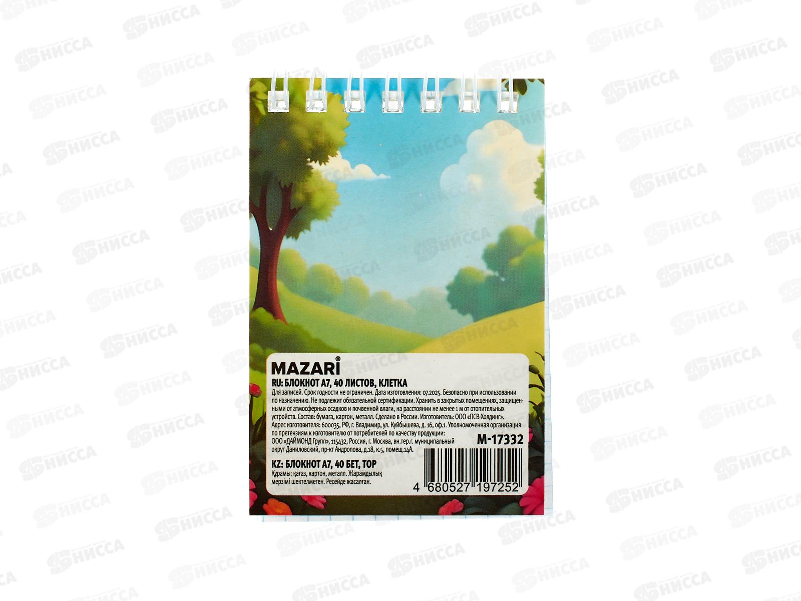 Блокнот 40л MAZARI А7 карт.обл.греб, M-17332 *132