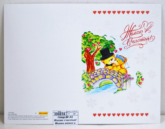Открытка MI А5 Желаю счастья! Мишки жених и невеста, 5-09-0202 *10