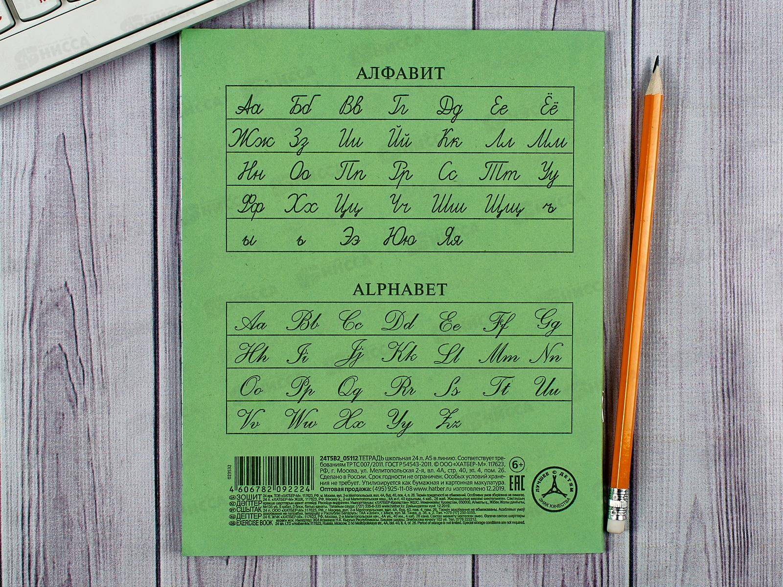 Тетрадь 24 листа линия Hatber зеленая обложка, 05112 *18/180