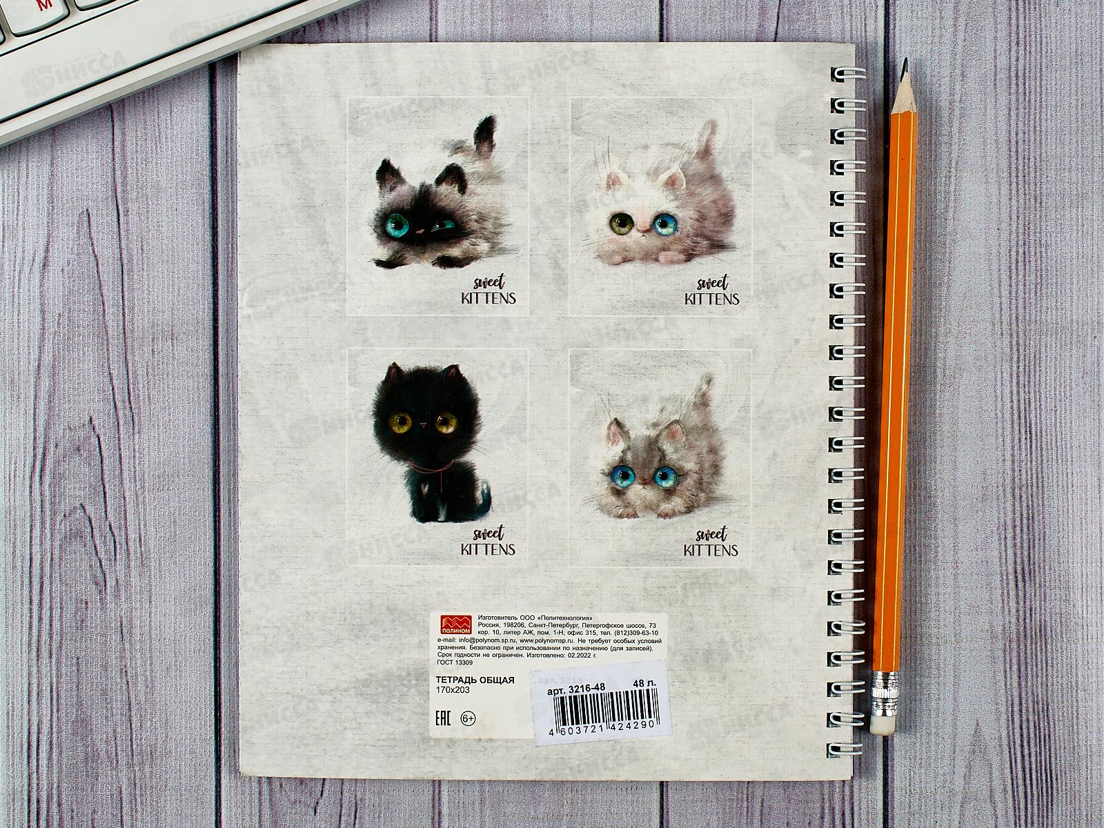 Тетрадь 48листов клетка ПЛН Глазастые котики, мет.греб., 3216-48 *30