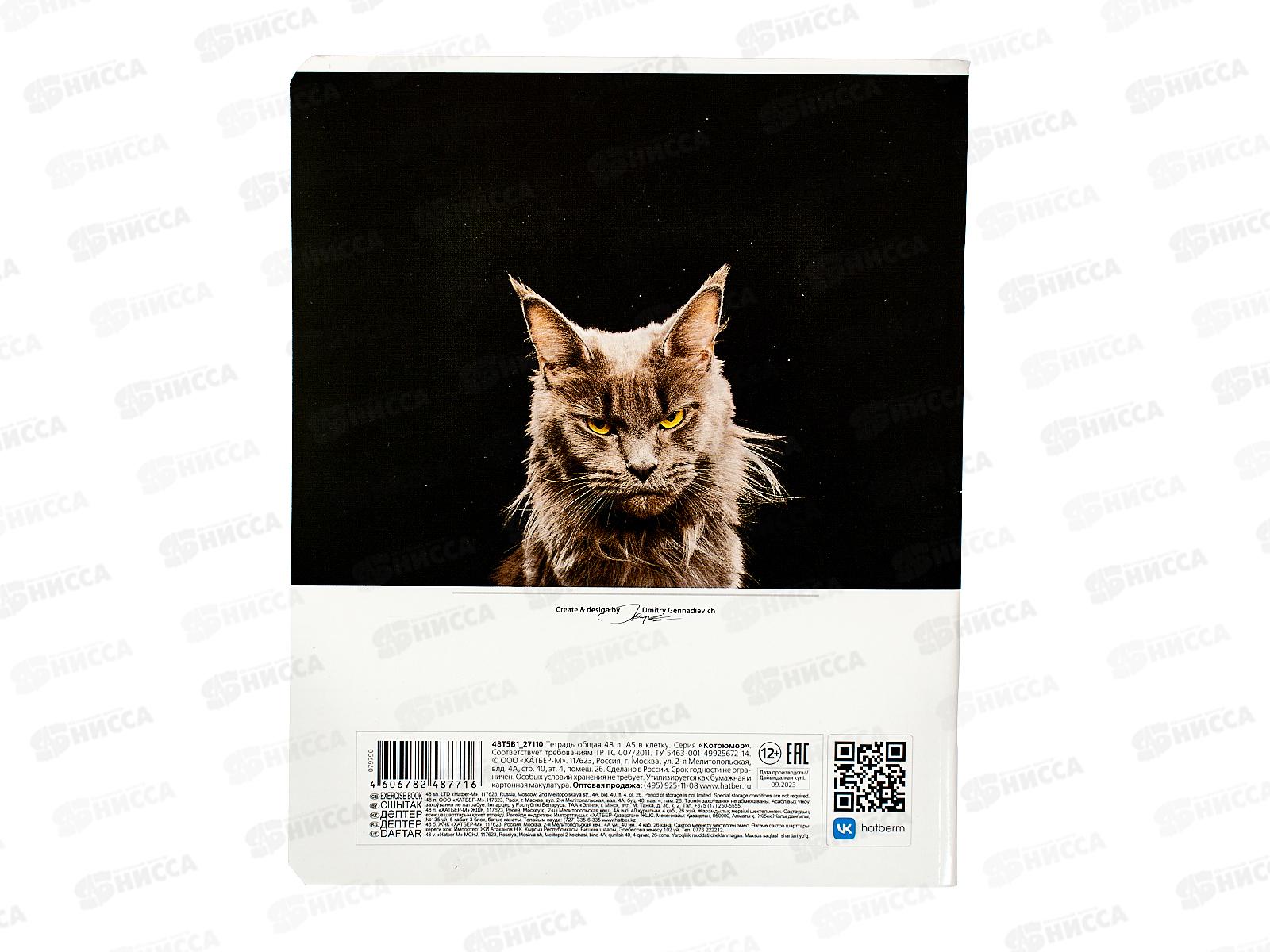Тетрадь 48листов клетка Hatber Котоюмор офс. *5/60