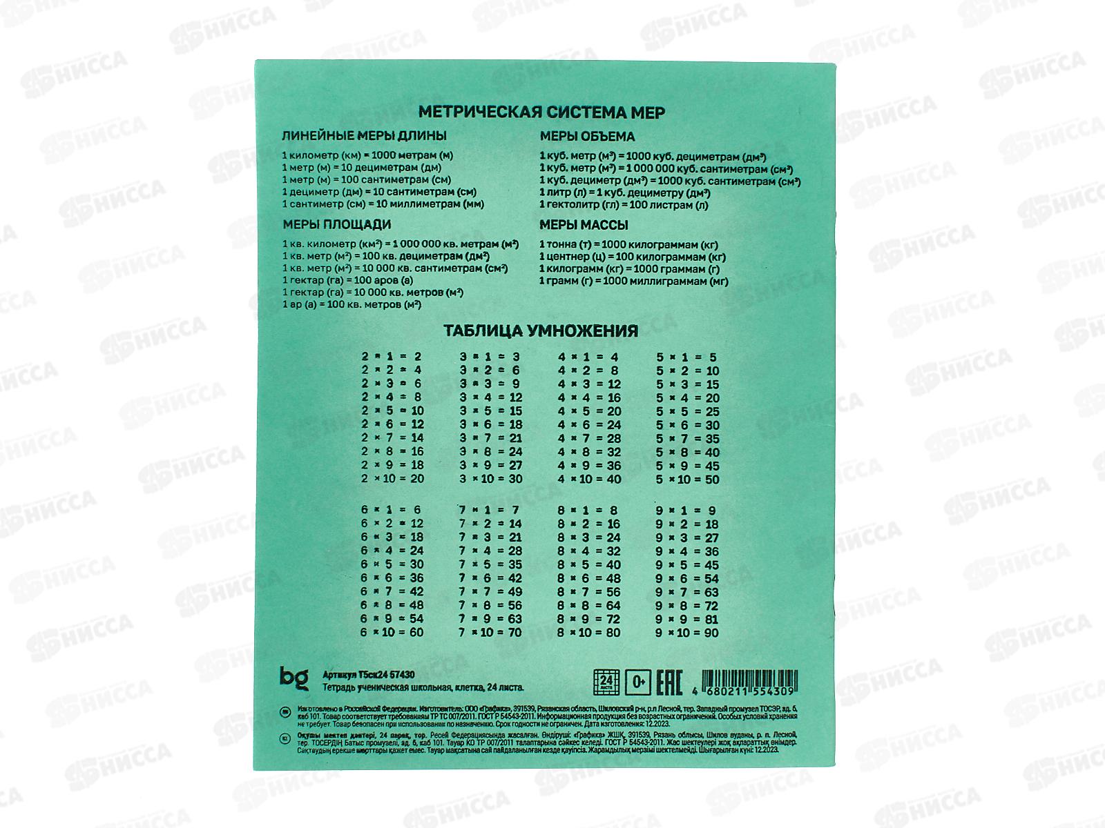 Дизайн задней обложки: таблица умножения, метрическая система мер