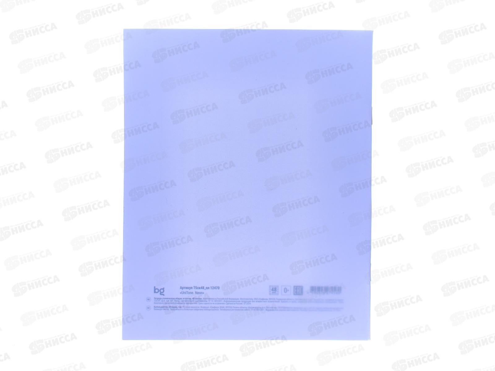 Тетрадь 48листов клетка BG UniTone.Neon.пластик.обложка,неон сирен,12470*4/56
