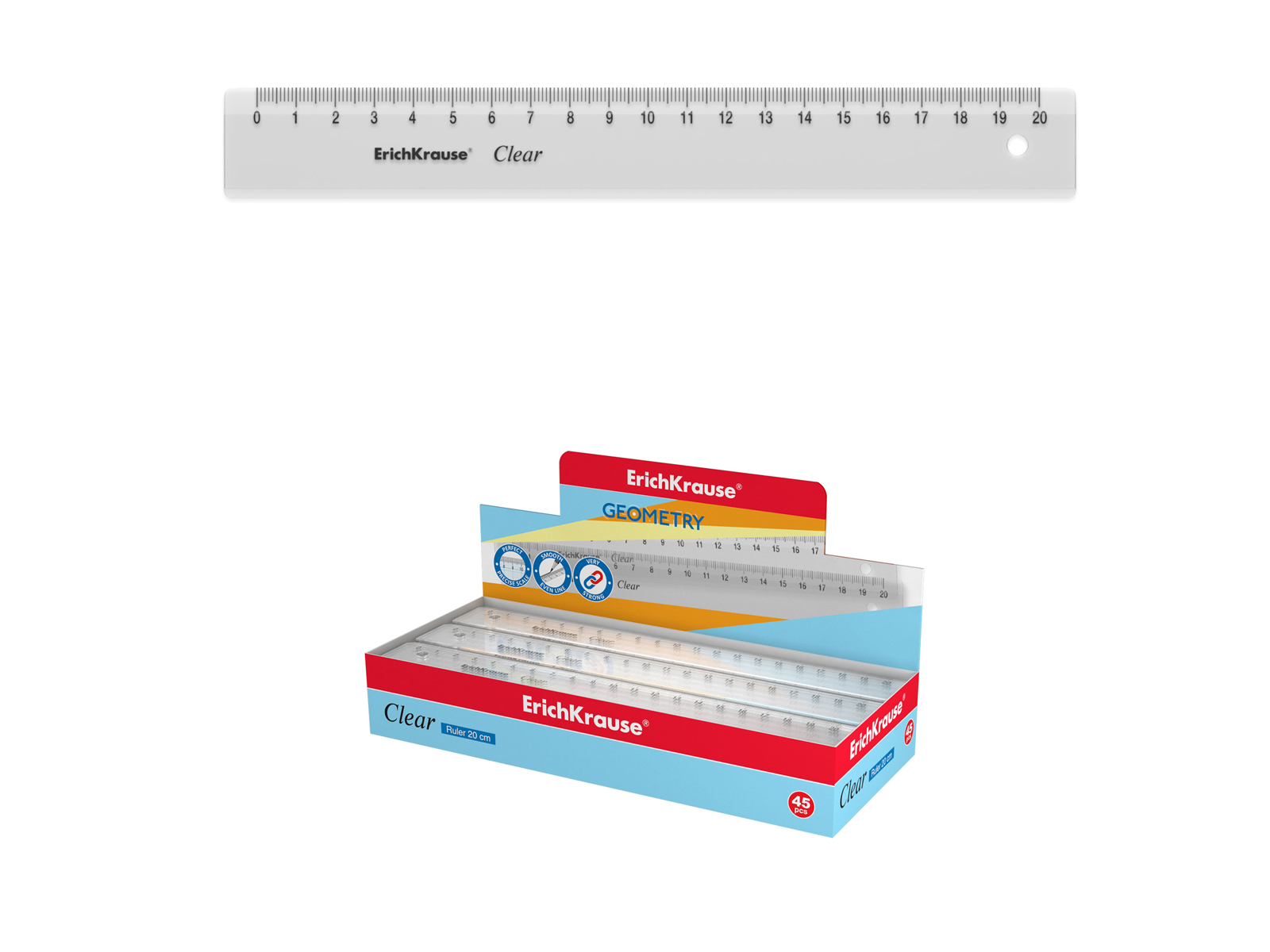 Линейка из высококачественного прозрачного пластика с краями для черчения тушью. Точная миллиметровая шкала; длина разметки составляет 20 см.