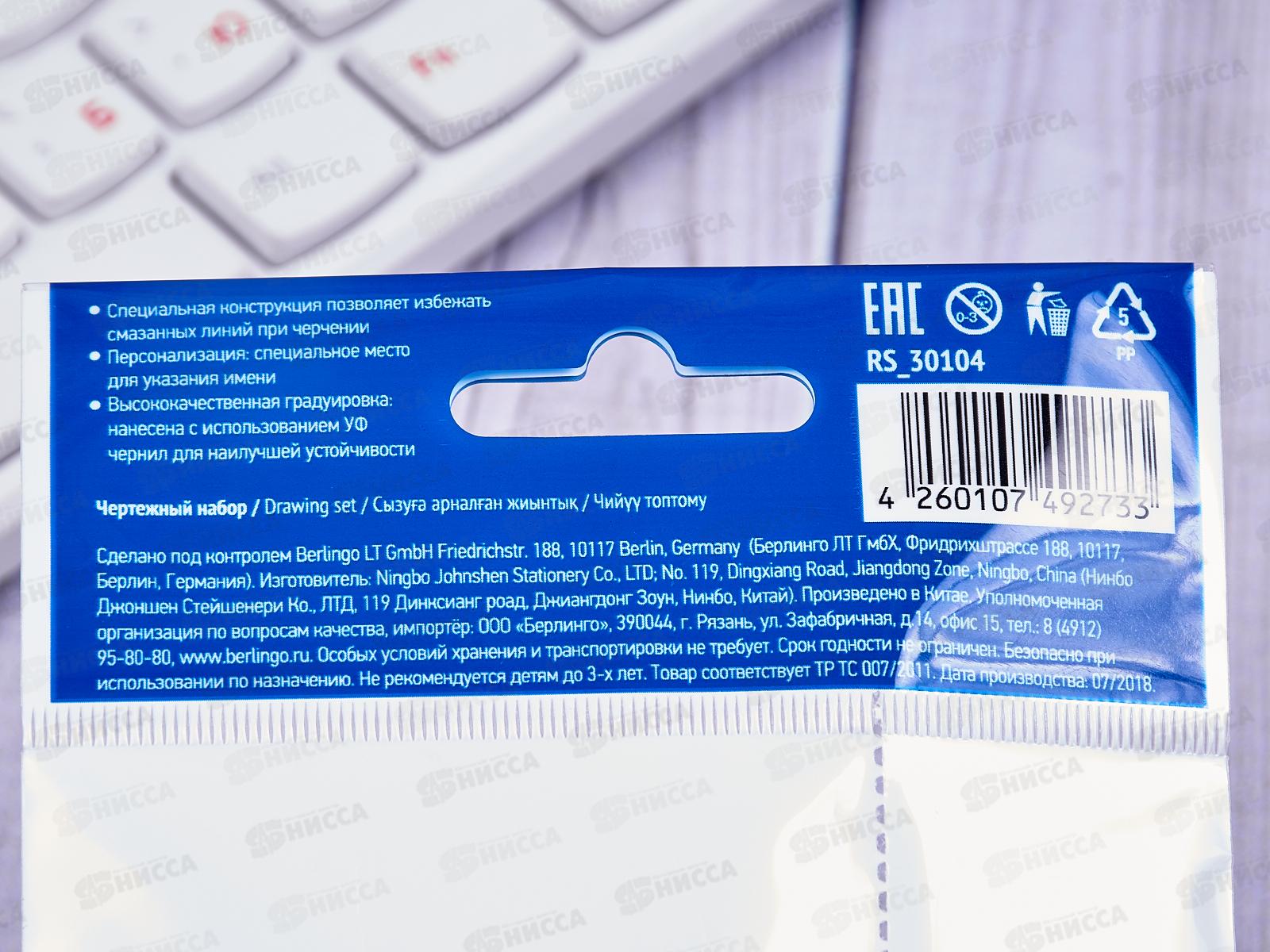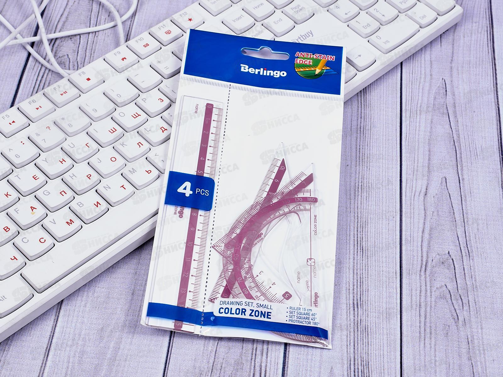 Набор чертежный Berlingo (треугольник.2шт,линейка 15см,транспортир) прозрачный, 30104 *48