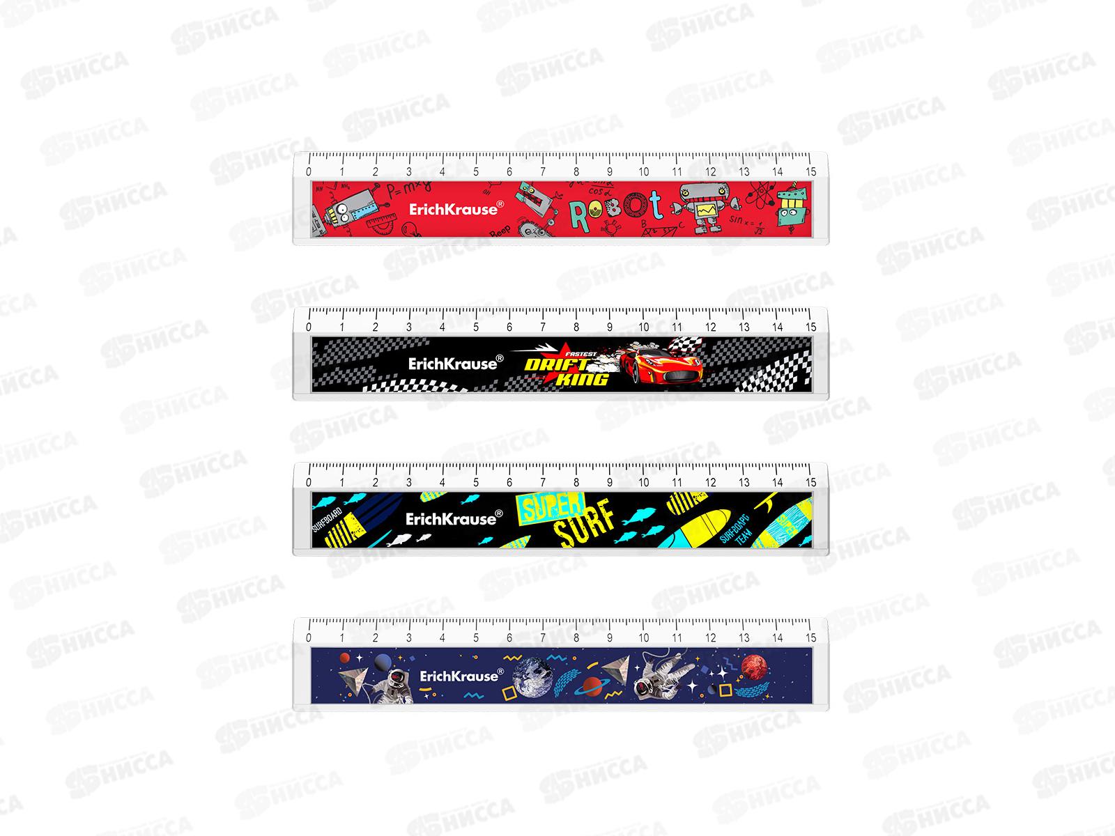 Линейка 15см EK пластиковая, boy 4диз.,асс. 55982