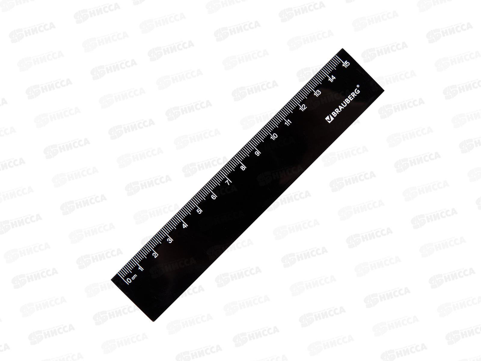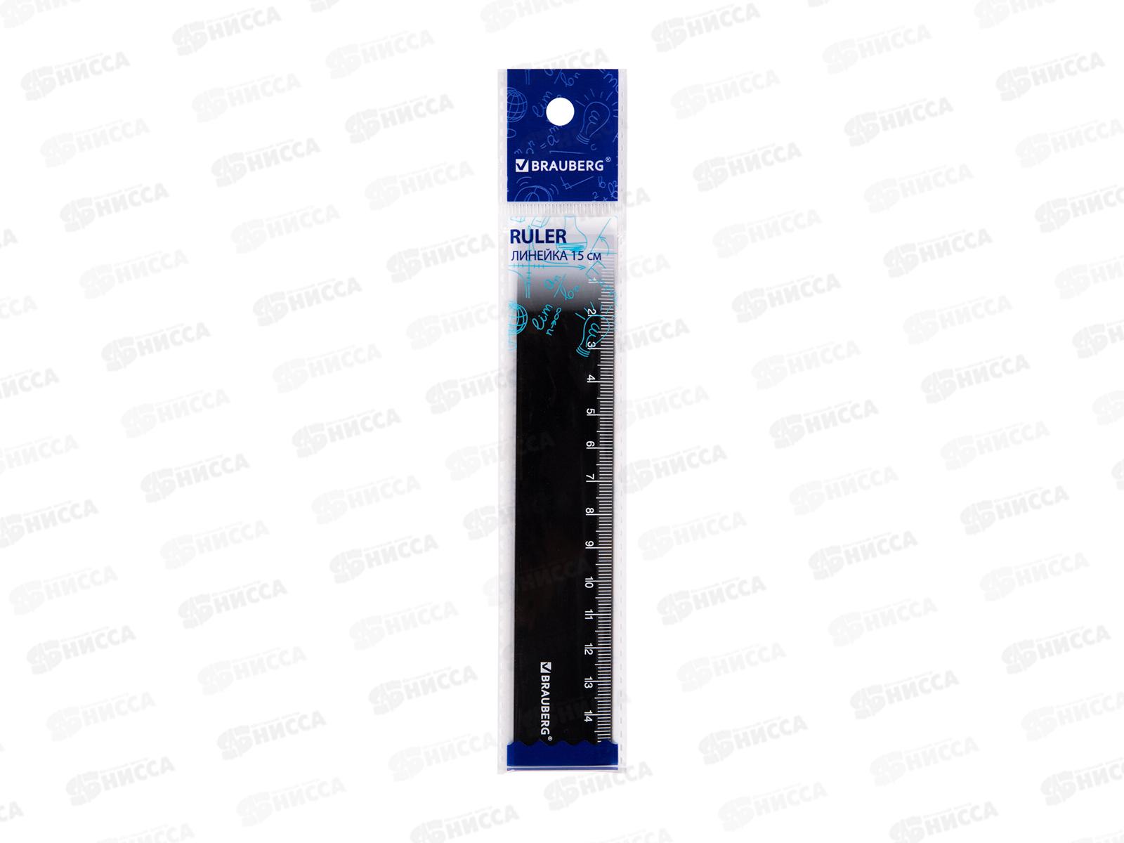 Линейка 15см BRAU черная, пластик, 210774 *24/96
