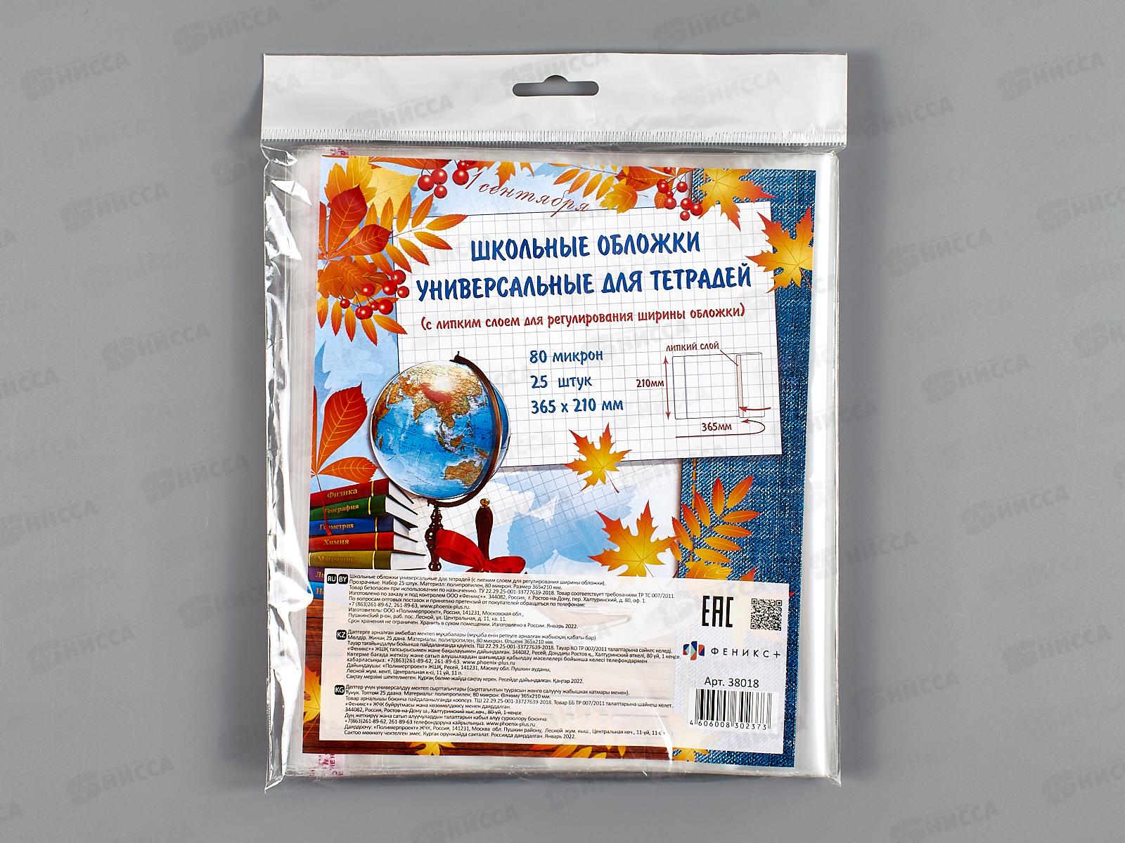 Обложка для учебников ФЕН 365*210 липкий слой, 80мкм, 25шт, 38018 *40