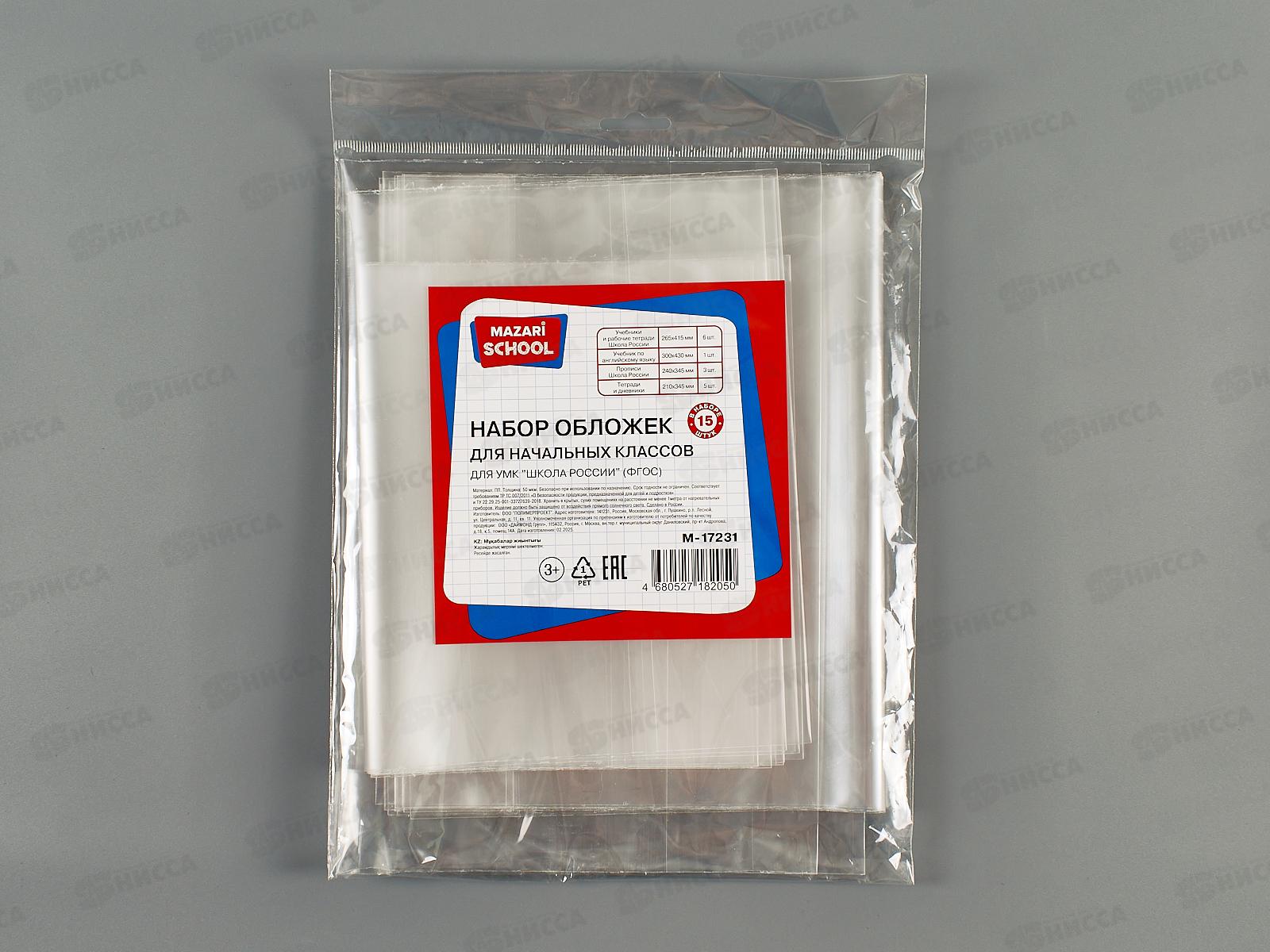 Обложка д/учеб. Mazari 265*415мм,50мкм, 15шт, Нач.школа М-17231 *100