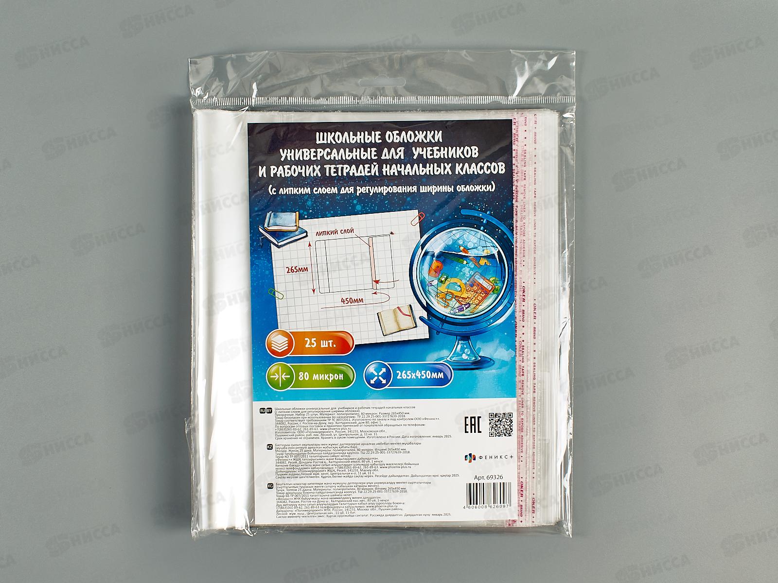 Обложка д/учеб. ФЕН 450*265 липкий слой, 80мкм, 25шт, 69326 *40