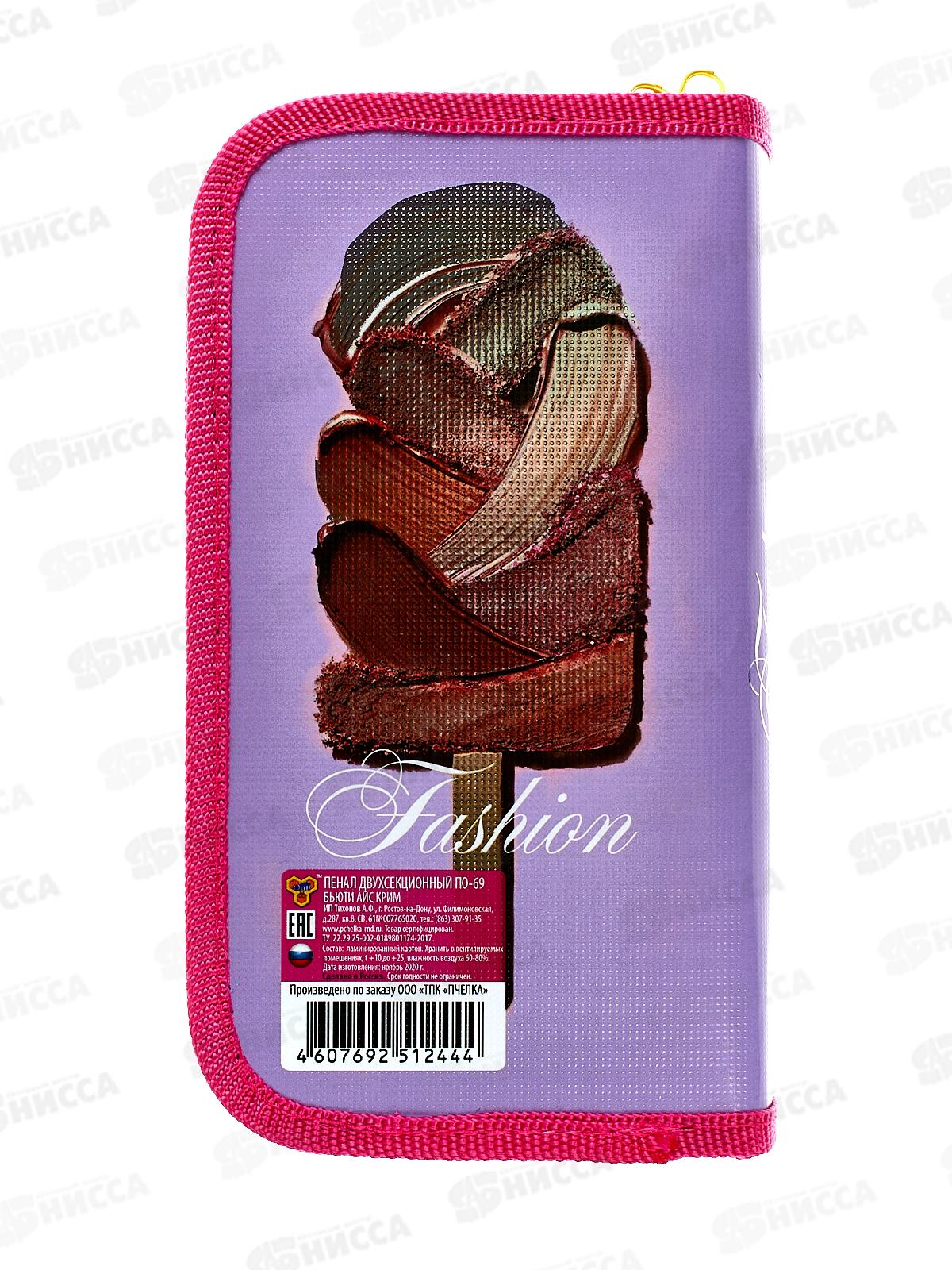 Пенал ПЧЕЛКА Бьюти айс крим 2021, фол., 2отд., 190*105, ПО-69 *30