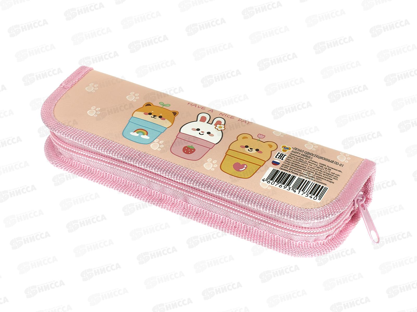 Пенал ПЧЕЛКА 1 отд. Happy animals 2024 190*65 ПО-01 *60