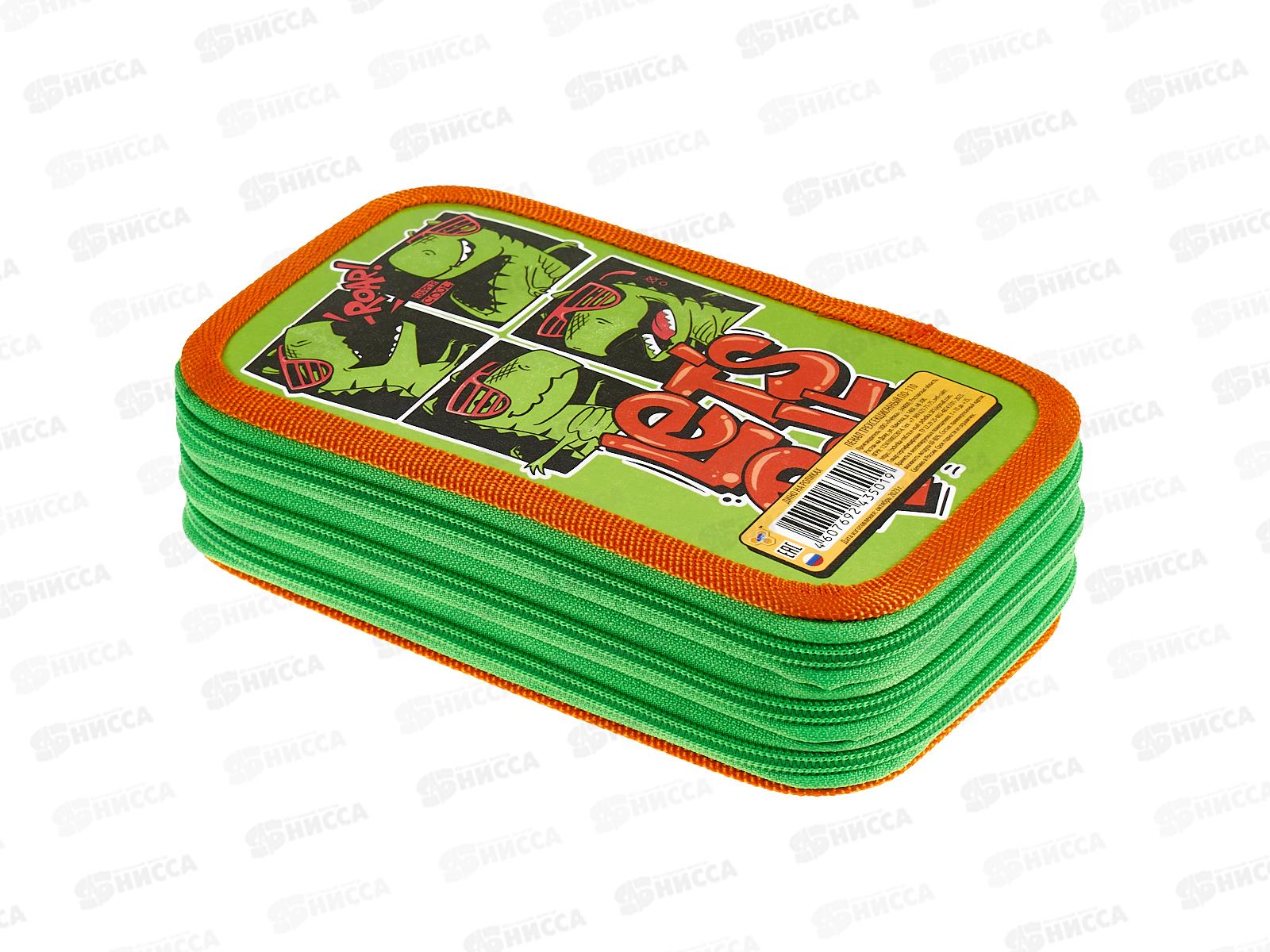 Пенал ПЧЕЛКА 3отд., Дино на роликах 190*105, ПО-110 *15