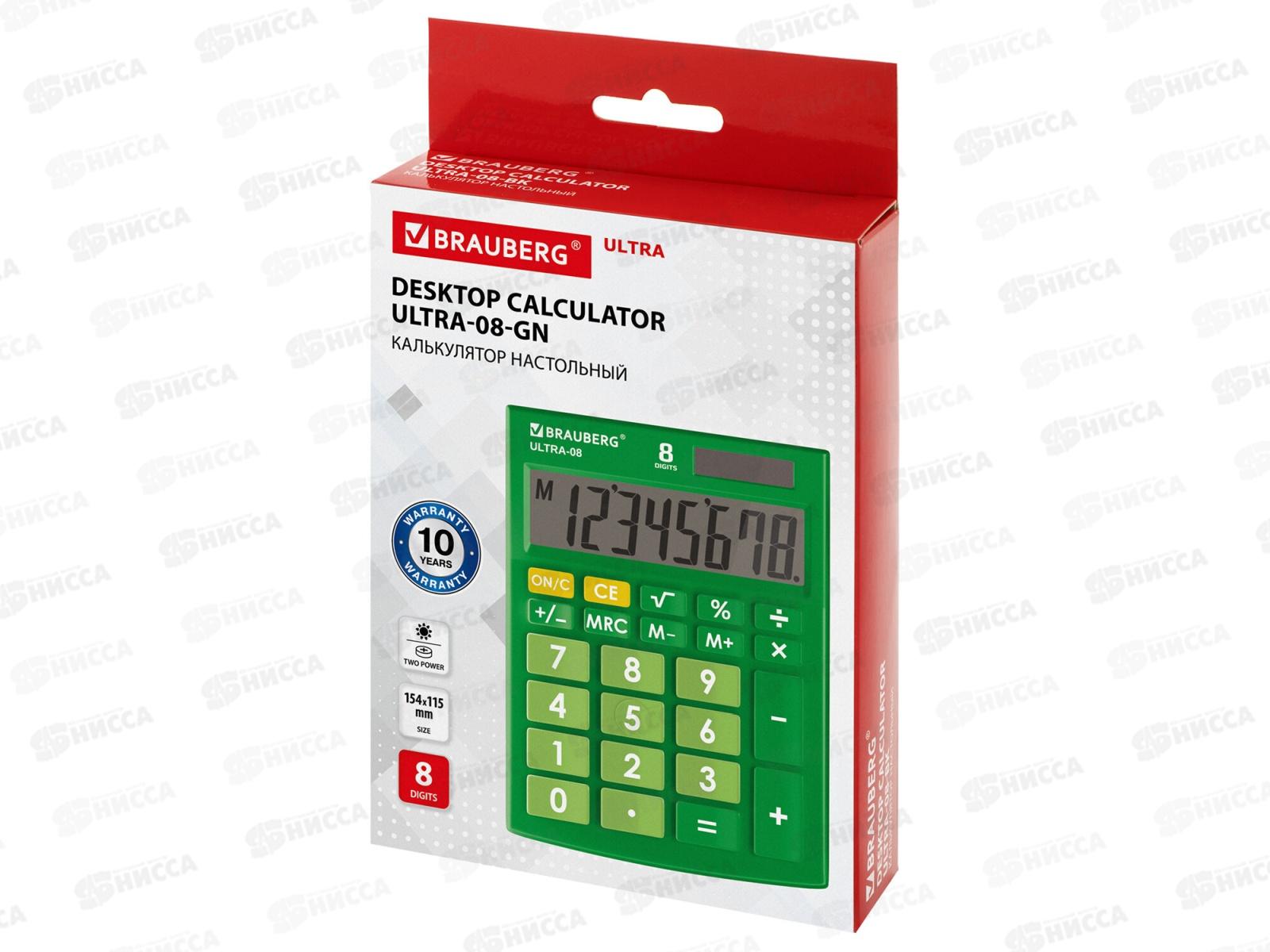 Калькулятор BRAU 8разряд.,компакт. зелен.,250509*200