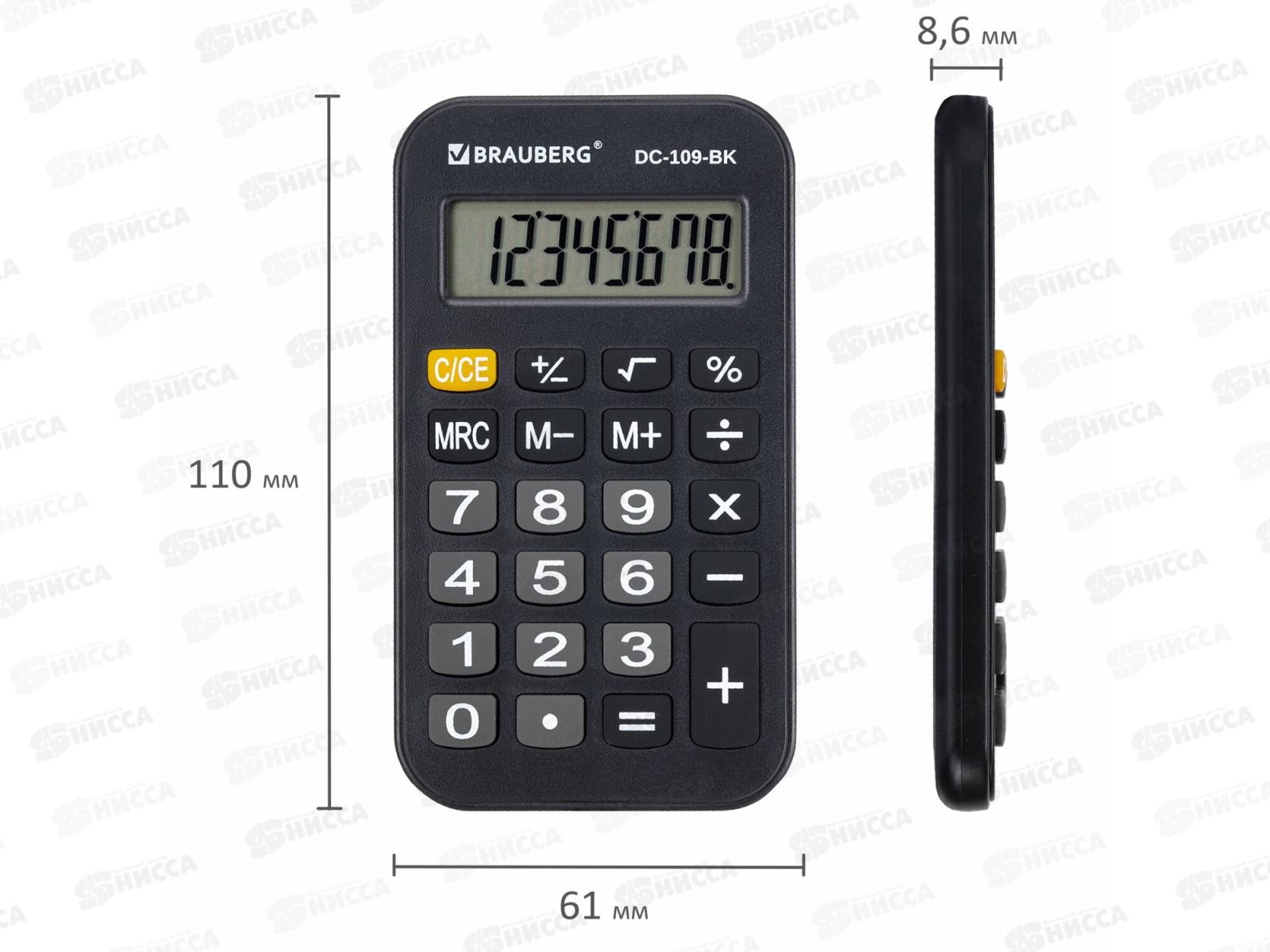 Калькулятор BRAU DC-109-BK 8разряд.,компакт.черный.,272642 *200