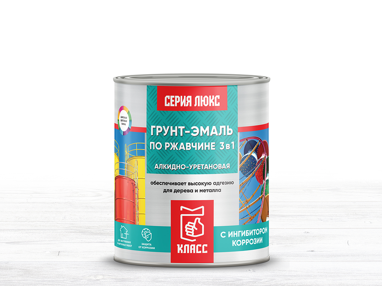 ГРУНТ-ЭМАЛЬ ПО РЖАВЧИНЕ 3 в 1 КЛАСС СЕРИЯ ЛЮКС предназначена для преобразования ржавчины, грунтования и окраски чистых и прокорродировавших металлических поверхностей, а также для окраски деревянных и других поверхностей внутри и снаружи помещений всех типов зданий и сооружений. Образует шелковисто-матовое покрытие. Применение грунт-эмали значительно упрощает подготовку поверхности перед окрашиванием и удешевляет технологию создания антикоррозийного покрытия. Сырьевые компоненты, входящие в состав грунт-эмали, действуют комплексно: преобразуют ржавчину в прочный защитный слой, препятствуют дальнейшему возникновению подслойной коррозии, образуют на поверхности металла прочное атмосферостойкое защитное покрытие.