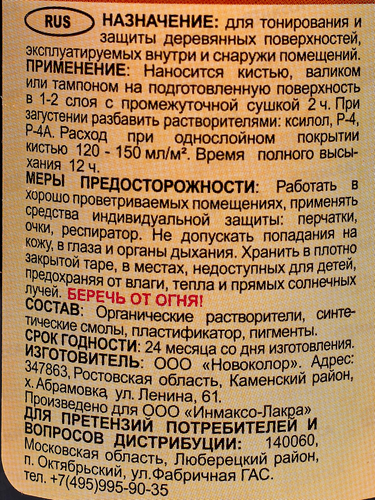 Состав: органические растворители, синтетические смолы, пластификатор, пигменты