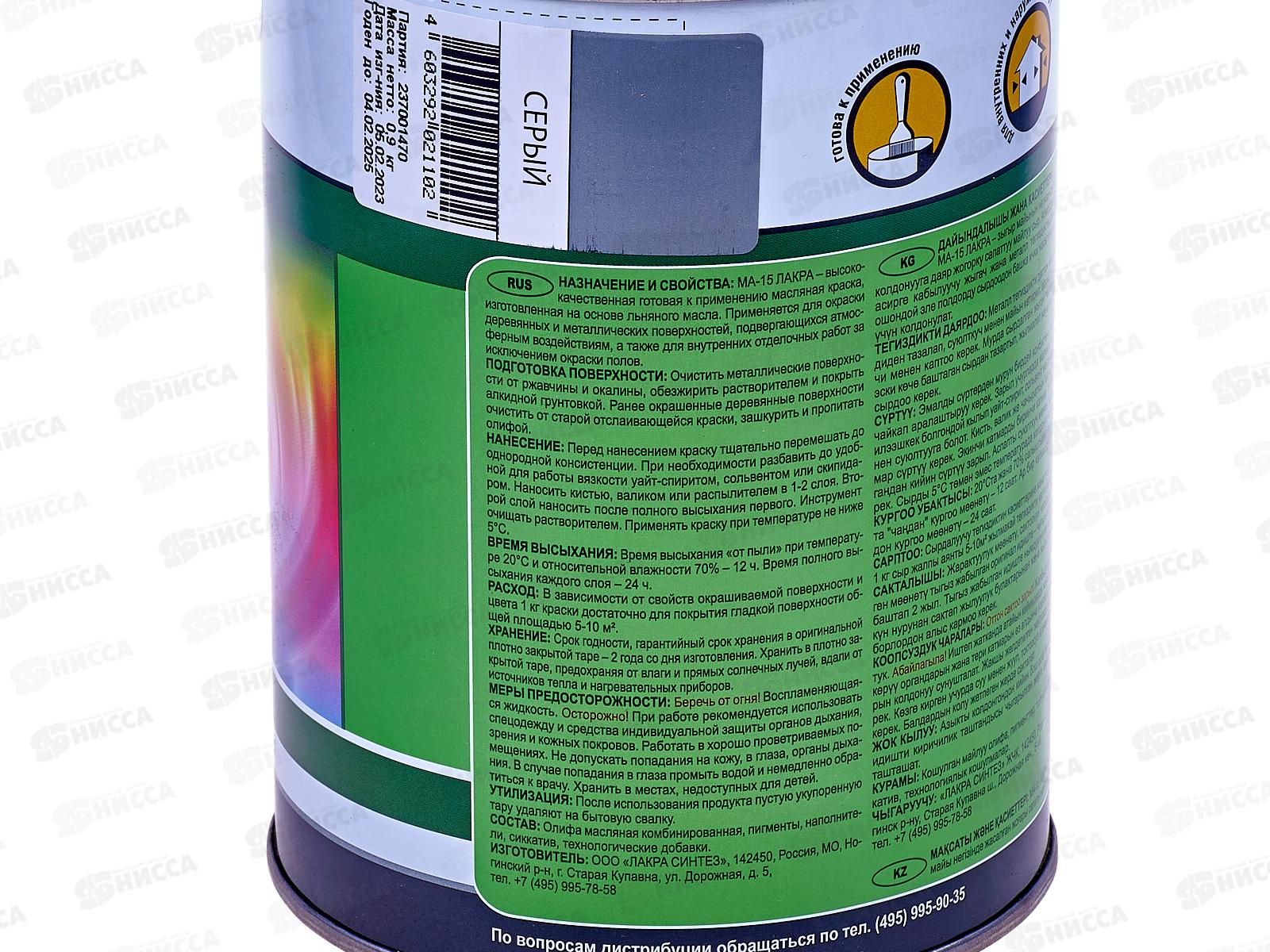 Краска Лакра МА-15 серый 0,9кг *10