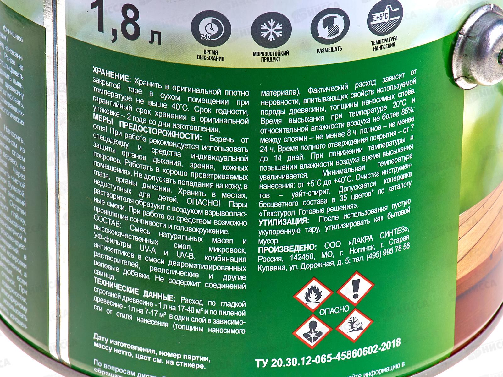 Высокоэффективное средство для защиты и декоративной отделки древесины. Не образует пленку на поверхности, сохраняет и выгодно подчеркивает естественную красоту древесины. Защищает от влаги, ультрафиолетовых лучей и других атмосферных воздействий. Препятствует гниению, образованию плесени и древесной синевы. Внутри помещения позволяет тонировать деревянные полы, обеспечивает защиту от воды, грязи и грибков, допускает влажную уборку. Легко реставрируется – только поврежденные участки. Срок службы покрытия снаружи помещений до 6 лет. Состав: натуральное полимеризованное льняное масло, воск, УФ-фильтр, биоцид, деароматизированный уайт-спирит, сиккатив, антиседиментационная добавка, антипленочная добавка, пеногаситель, светостойкие пигменты.