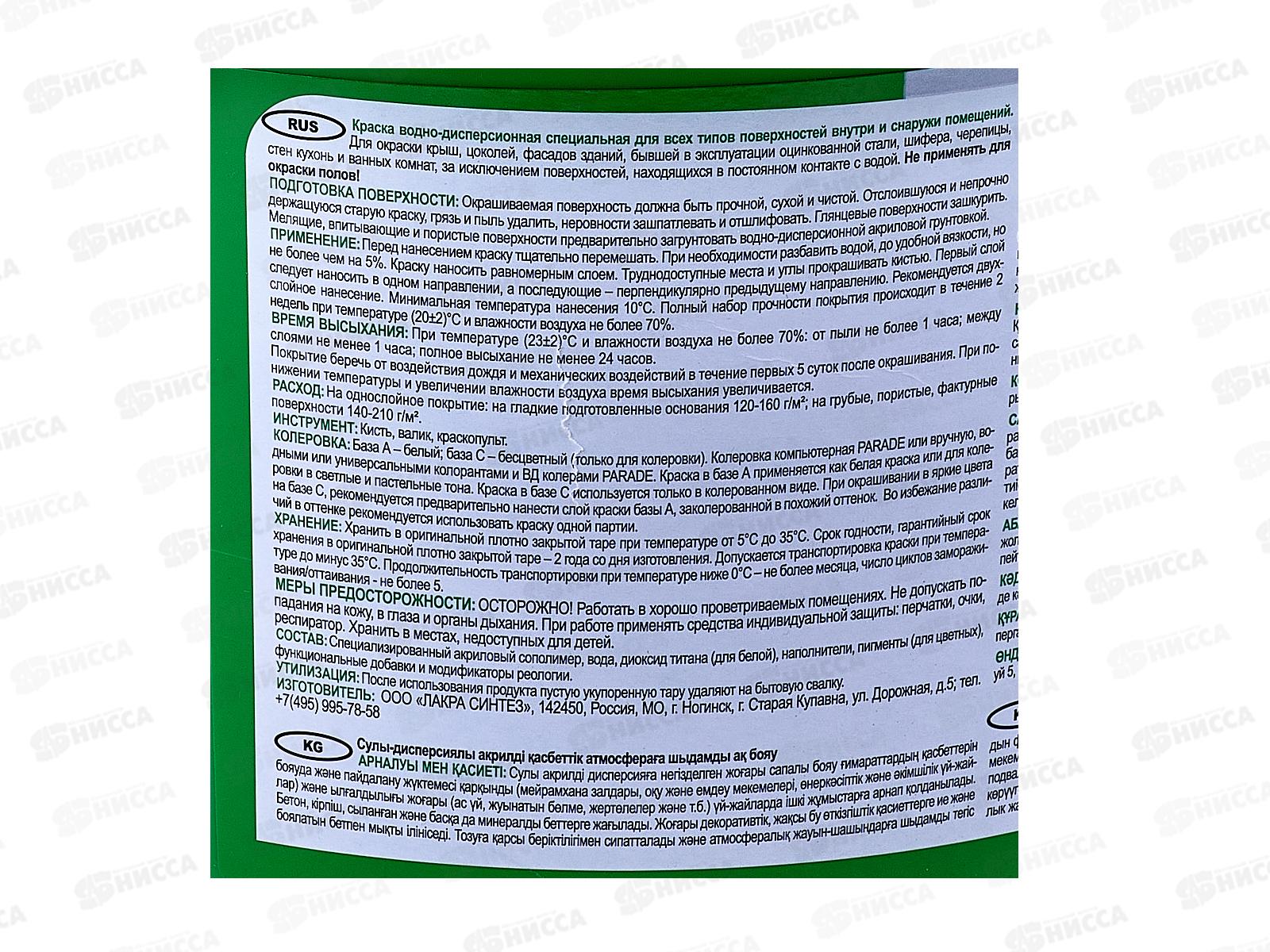 Состав: акриловый сополимер, вода, диоксид титана, наполнители, добавки и модификат