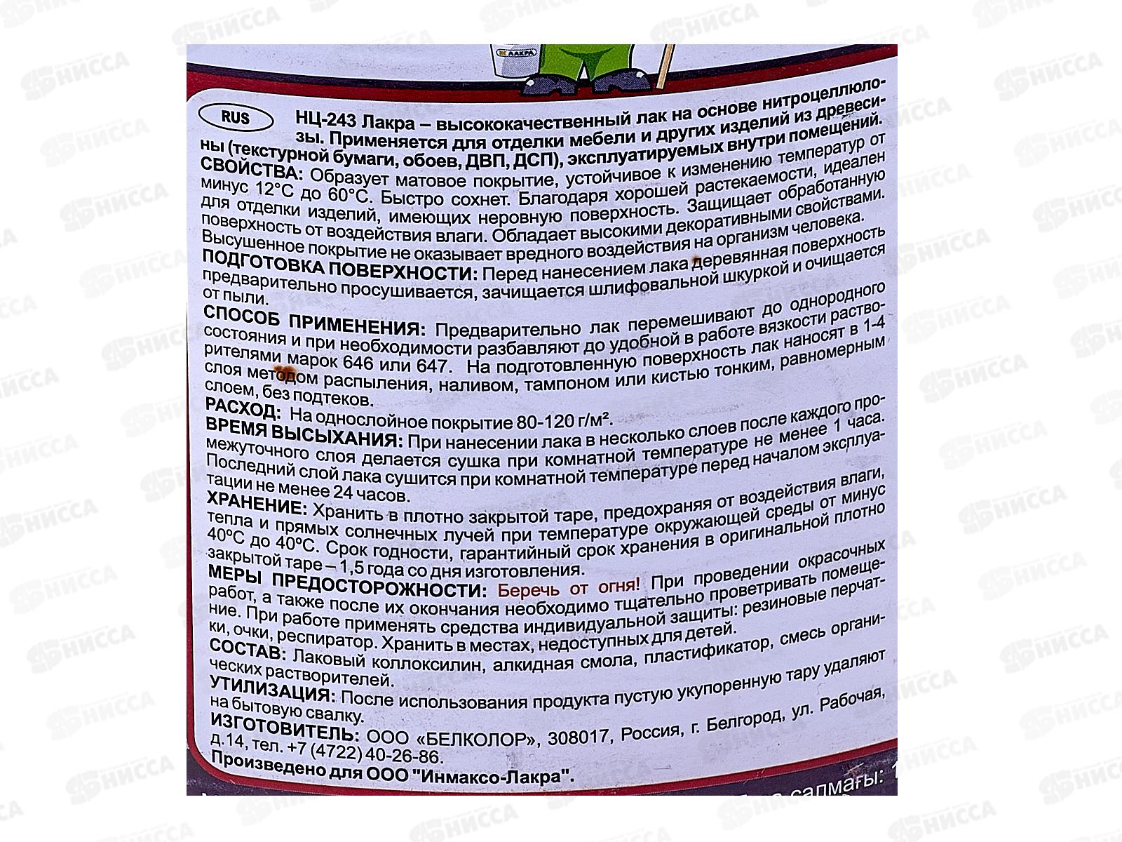 ЛАК НЦ-243 "ЛАКРА" 1,7кг до 01.24.*6 Россия