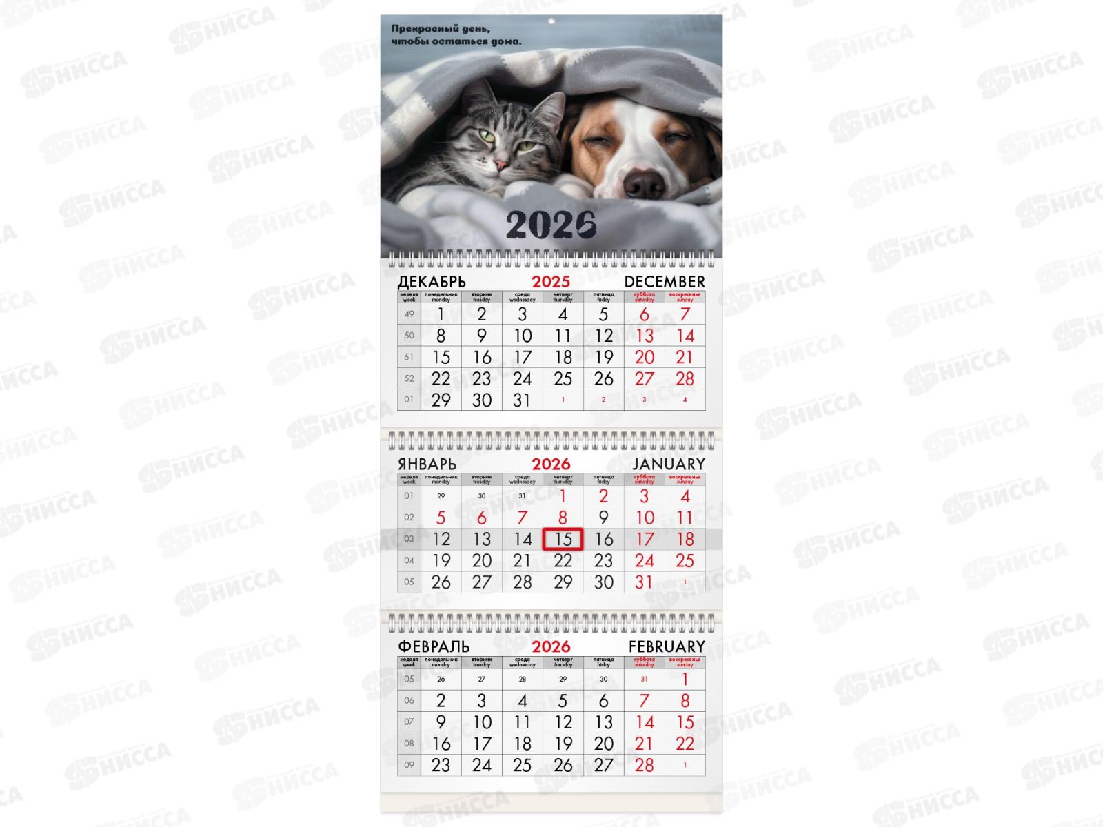Календарь кварт. 2026 BRAUBERG 3бл.3греб Домашние любимцы, 116763 *40
