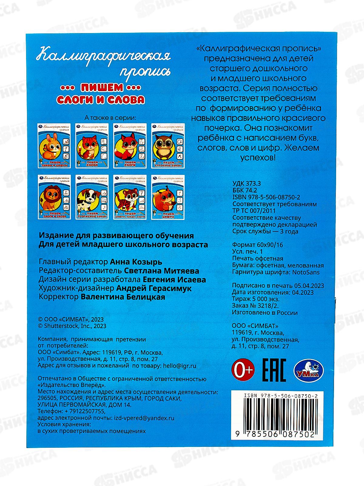 Прописи "УМКА" 08750-2 Пишем слоги и слова. Каллиграфическая 16стр.*50