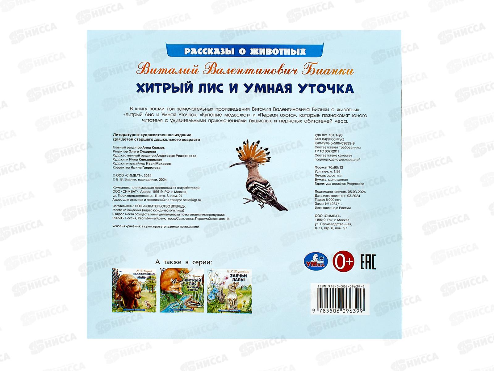Книга 09639-9 Умка: Хитрый лис и Умная уточка. Бианки В.В., 16стр.*50