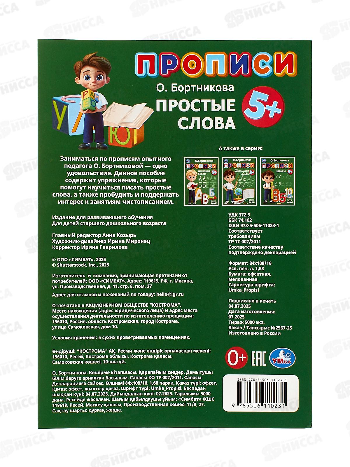 Прописи "УМКА" 11023-1 Простые слова. Бортникова О., 195х275мм, 16стр. *50