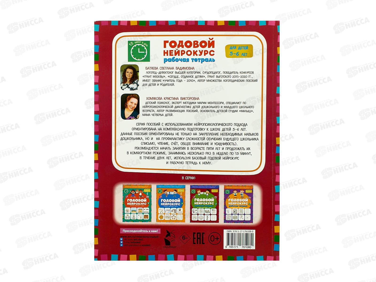Книга АСТ Годовой нейрокурс. Рабочая тетрадь. Для детей 5-6 лет, 6108-0