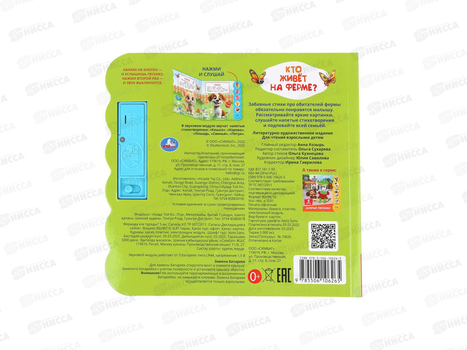 Книга Говорящая 9785506106265 Умка: Кто живёт на ферме?, 5кн., 5пес.