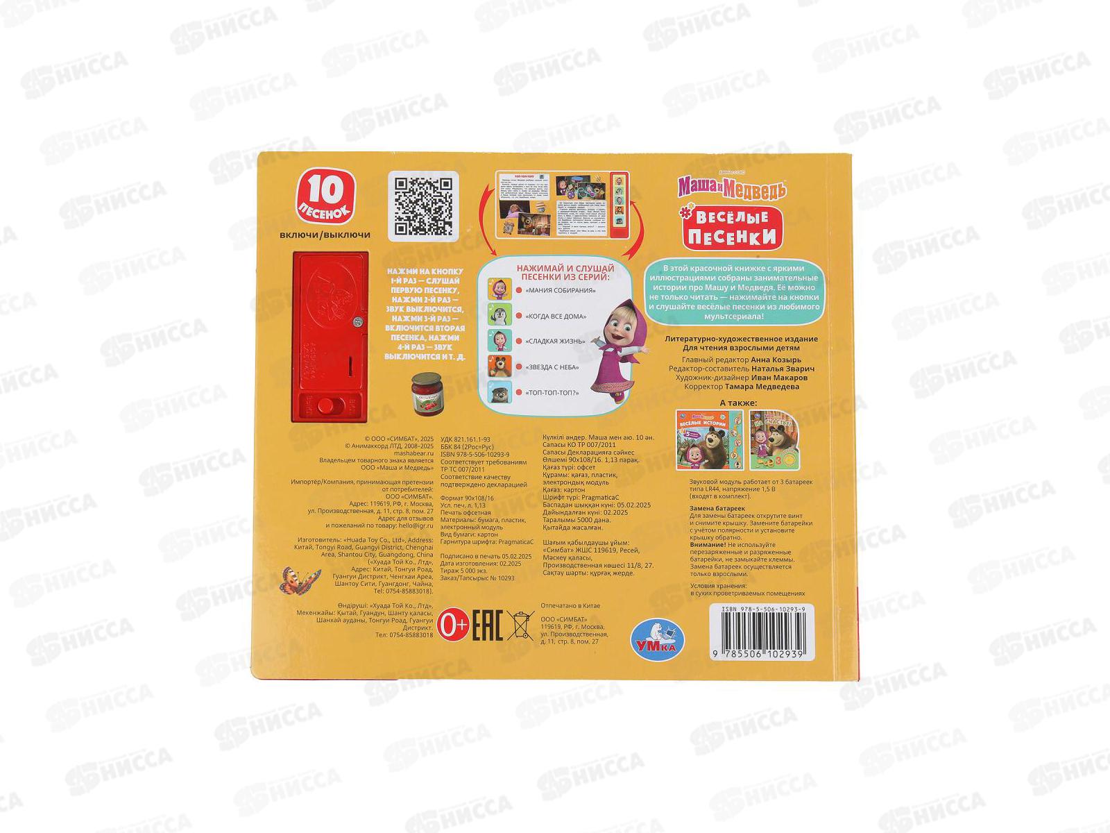 Книга Говорящая 9785506102939 Умка: Весёлые песенки. Маша и Медведь, 5кн. 10пес.