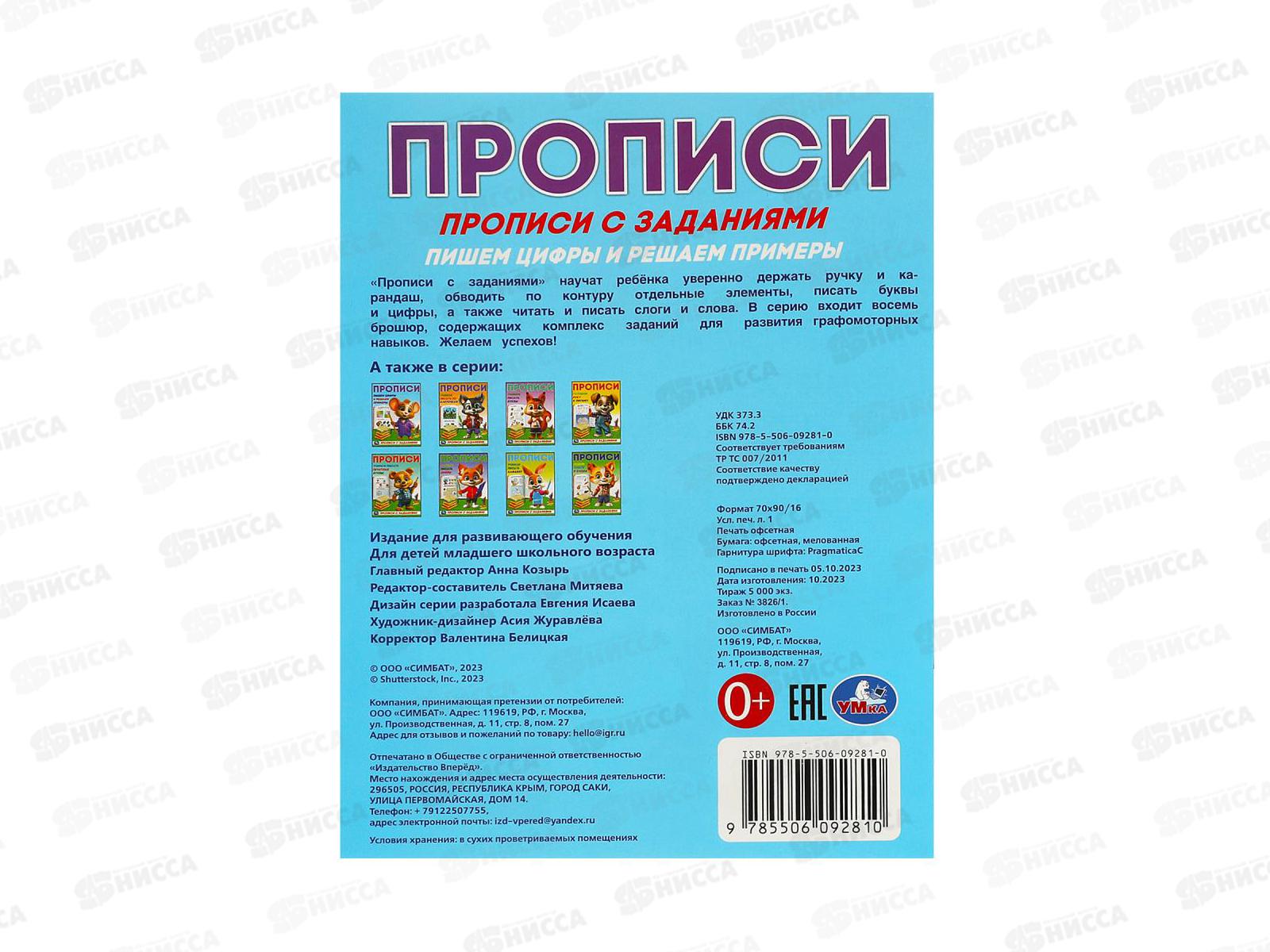 Прописи "УМКА" 09281-0 Пишем цифры и решаем примеры, 162х215мм*50