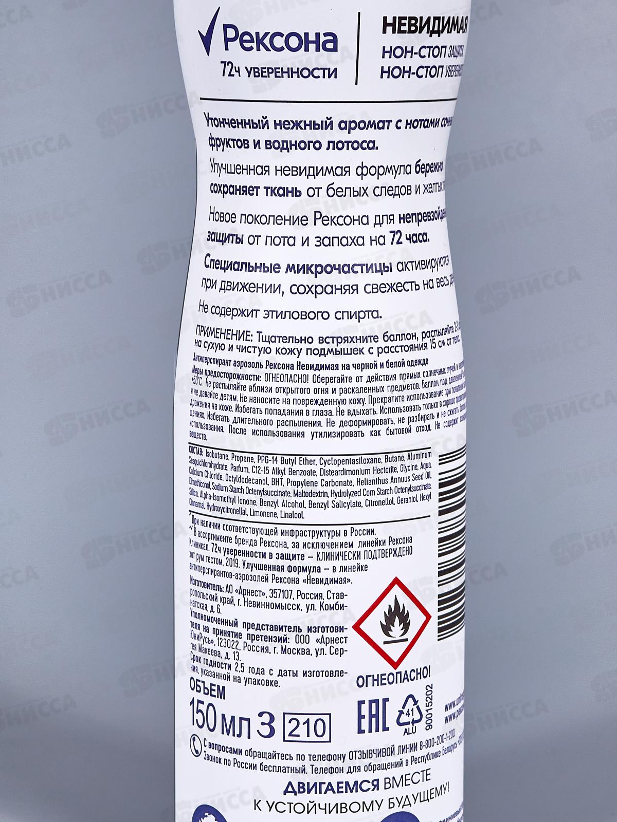 РЕКСОНА дезодорант спрей 150мл Невидимый на Черном и Белом *6