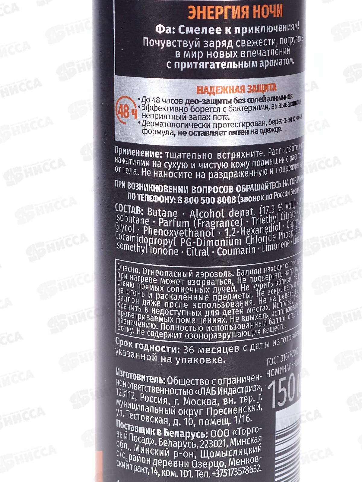 ФА дезодорант спрей MEN Энергия ночи 150мл *12