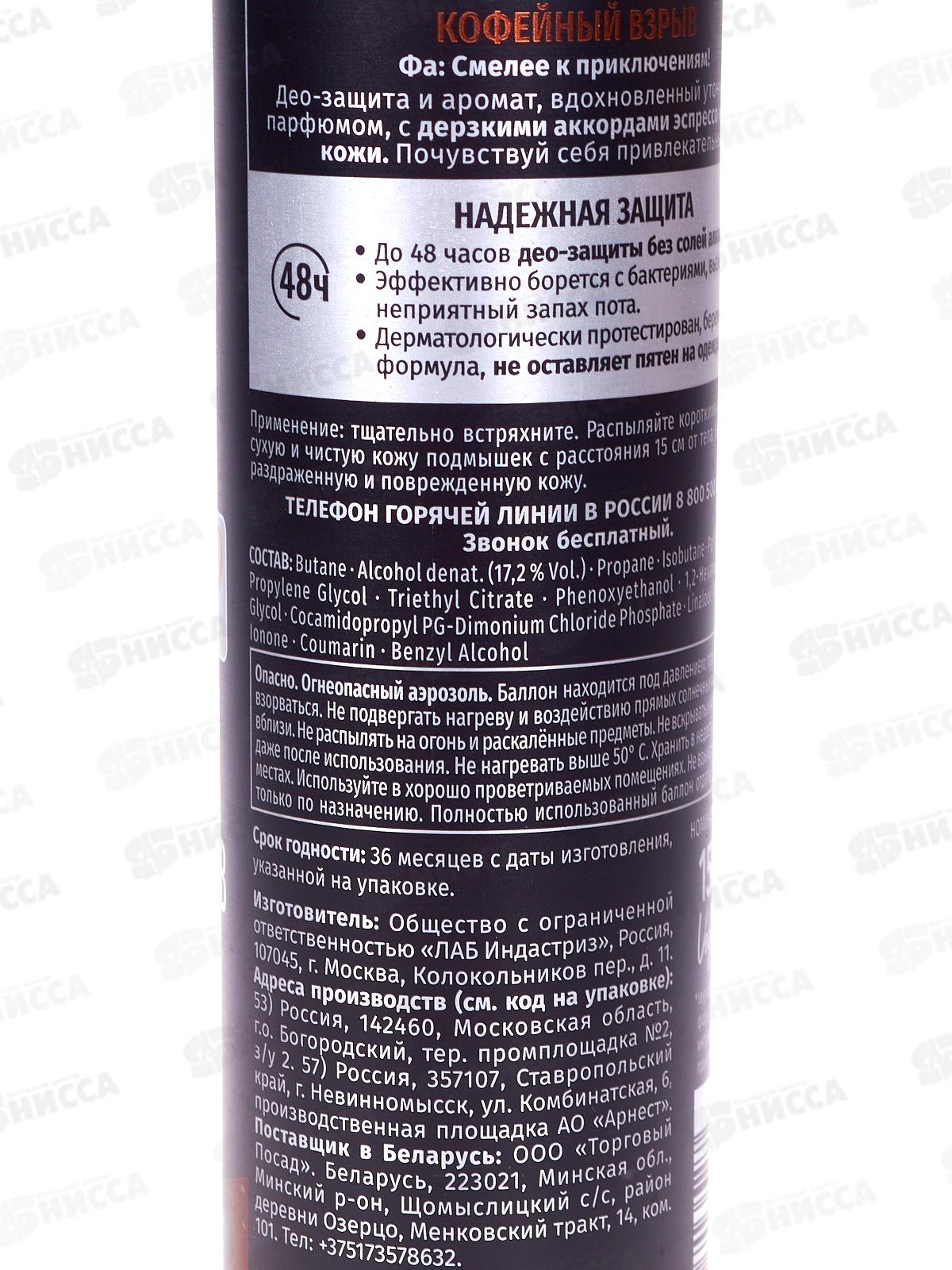 ФА дезодорант спрей MEN Coffee Burst (Кофейный взрыв) 150мл *12