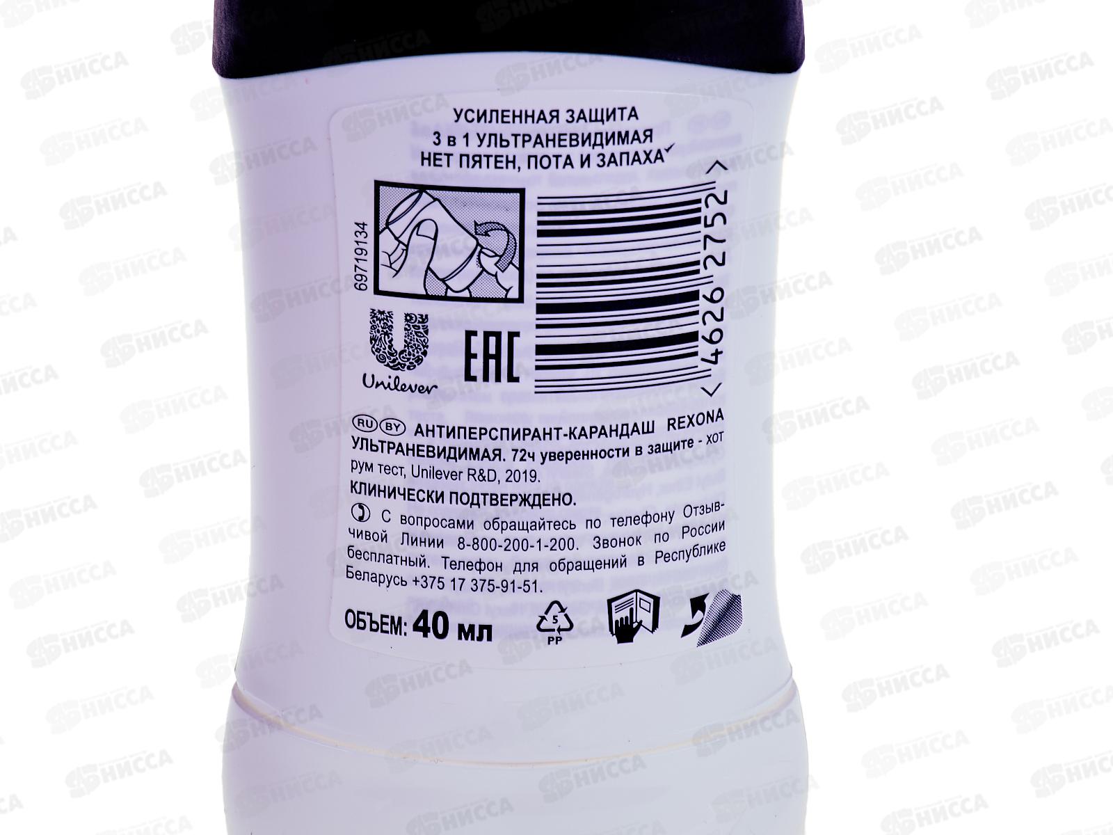 РЕКСОНА дезодорант стик 40мл Ультраневидимая *6/30