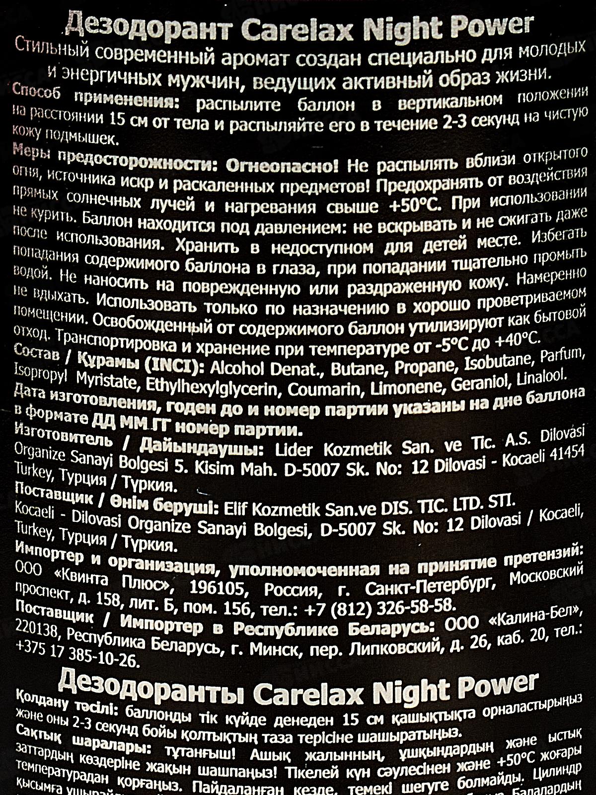 Carelax Дезодорант спрей мужской Night power 150мл 5414 *12/48
