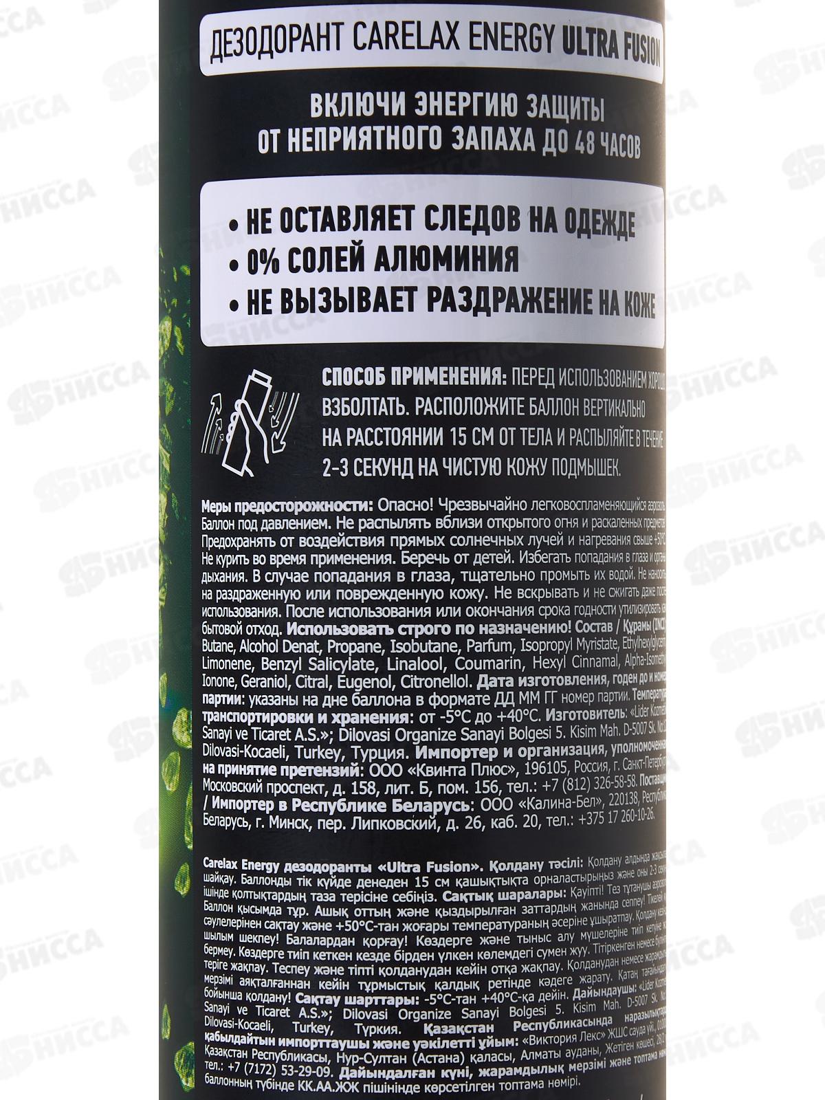 Carelax Energy Дезодорант спрей мужской Ultra Fus 150мл 5573 *12/48