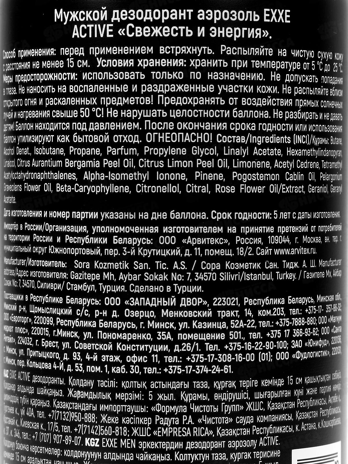 EXXE MEN Дез спрей ACTIVE 150мл муж *12 С0008354