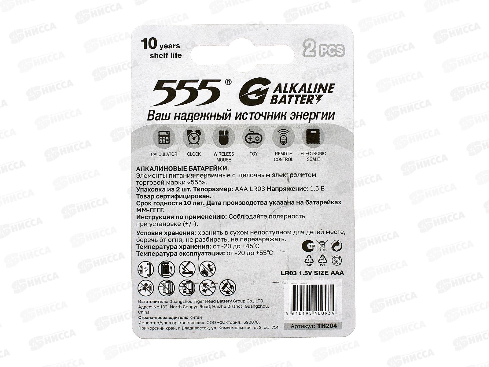 Батарейки 555 AAA LR3 2шт алкалиновые *12/360