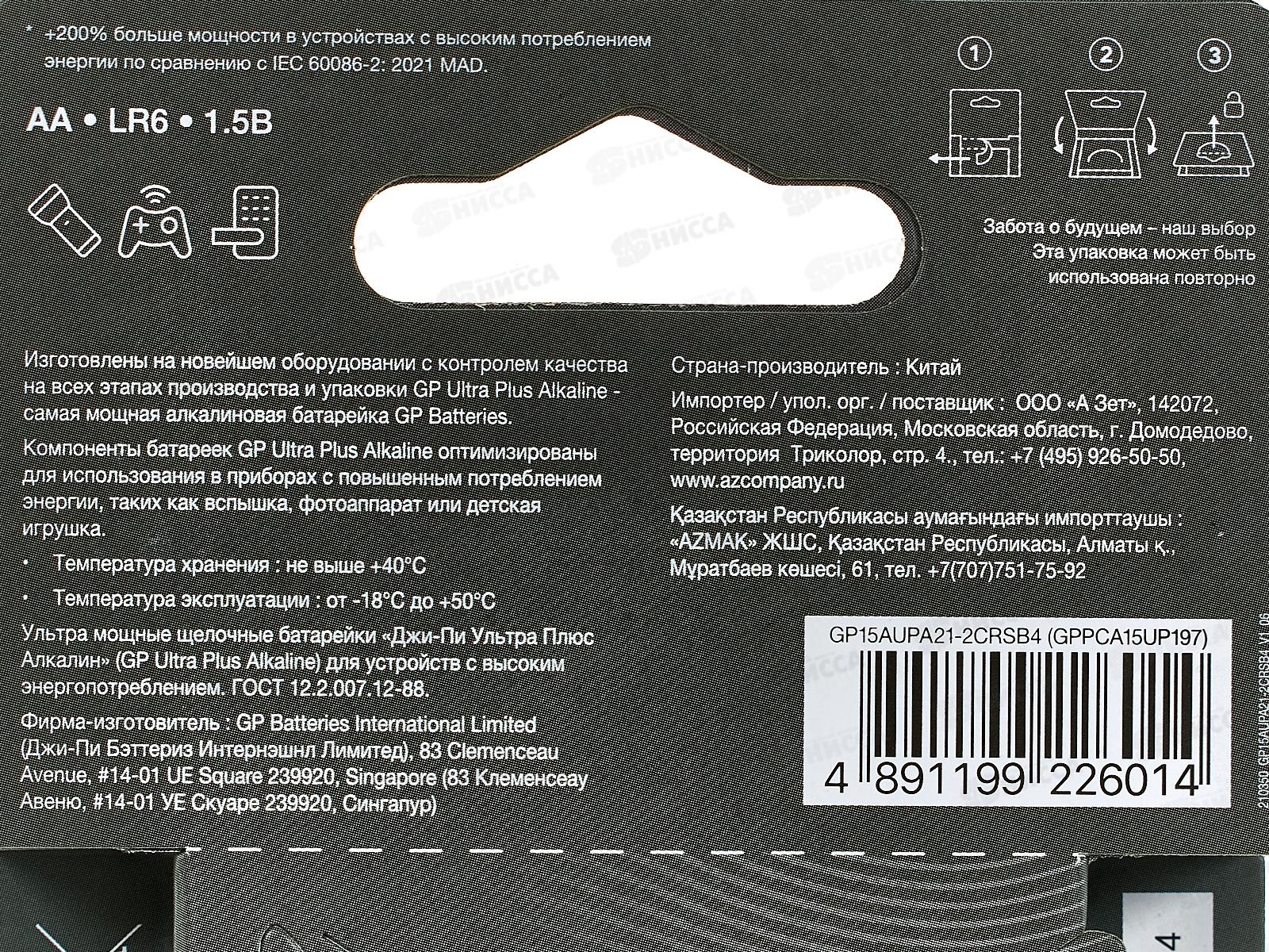 Батарейка ДЖИ-ПИ LR6 Ultra+ G-TECH, 4BL *4/40/320