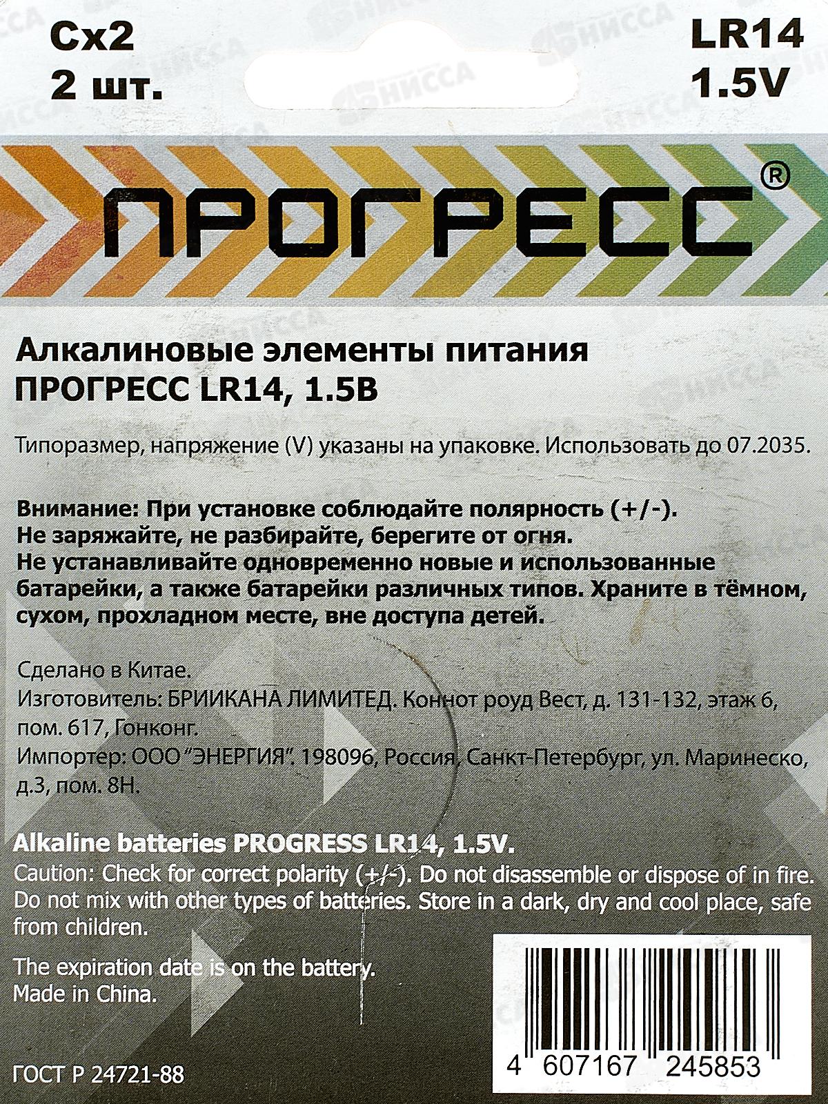 Батарейка ПРОГРЕСС LR14 card *2/24