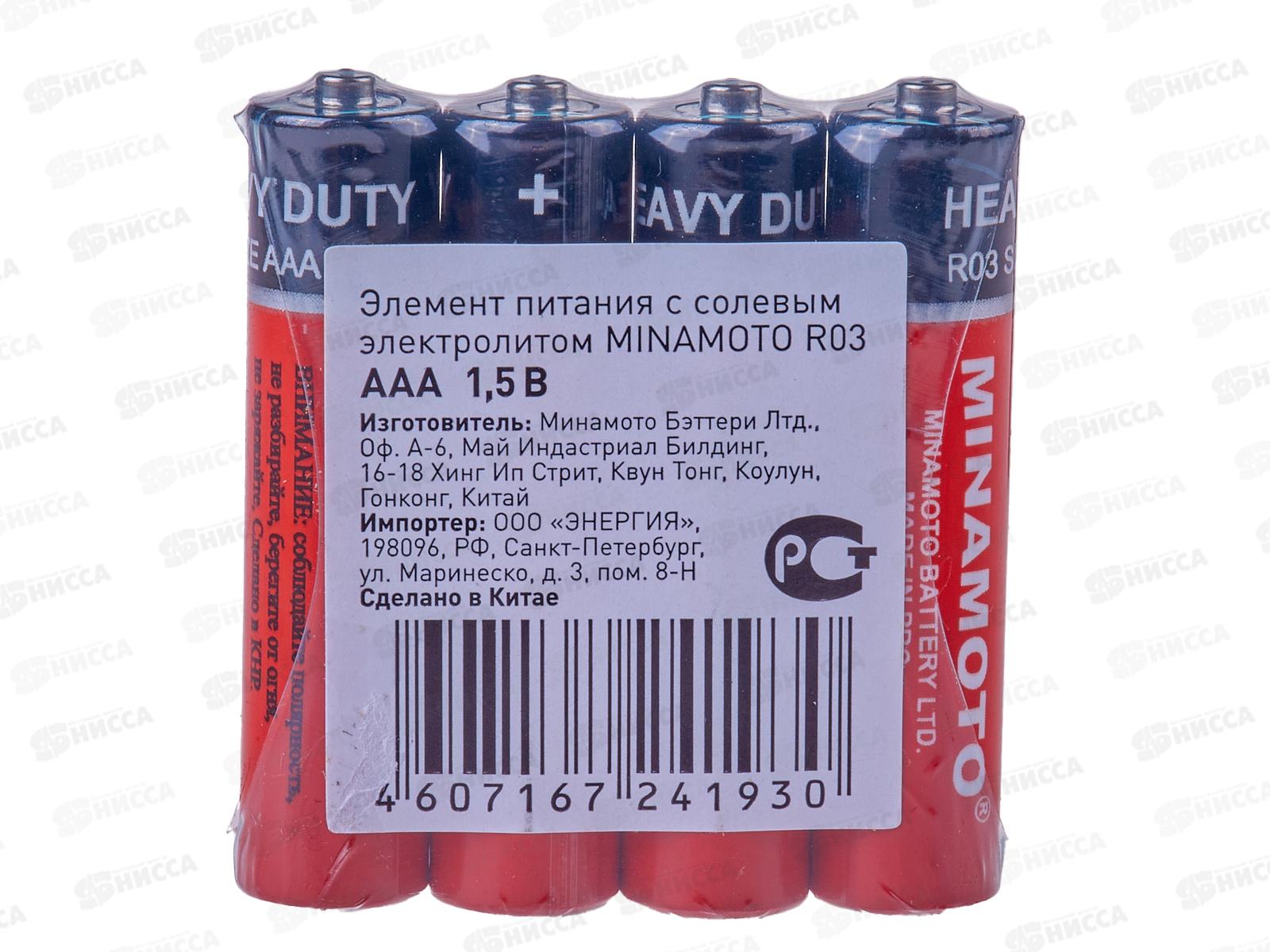 Батарейки МИНАМОТО R03 *4/60/1200