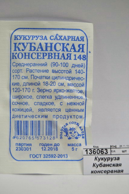 Кукуруза Кубанская консервная сахарная 5г Белый пакет*10 З.Сотка